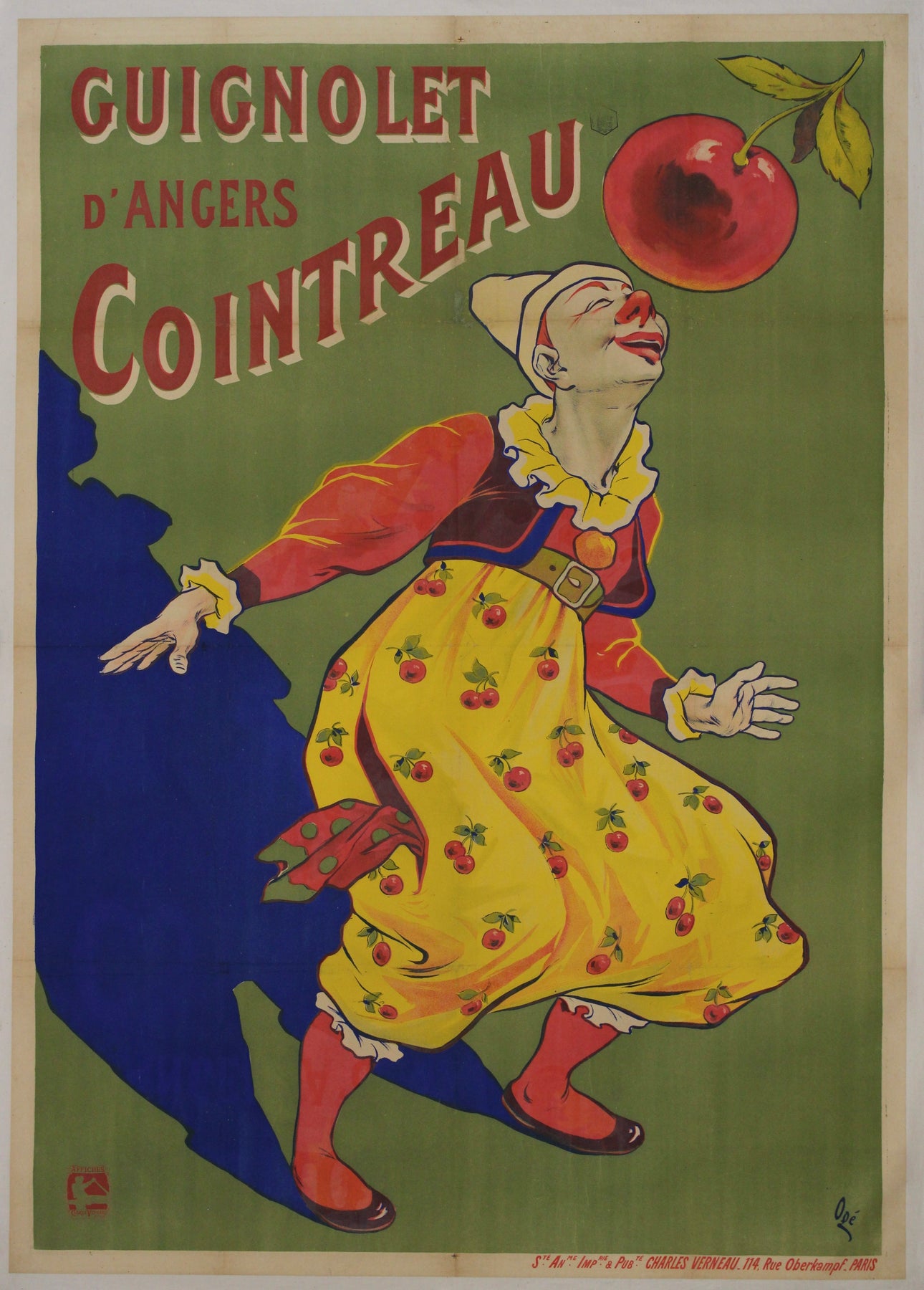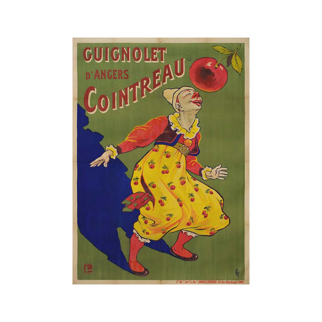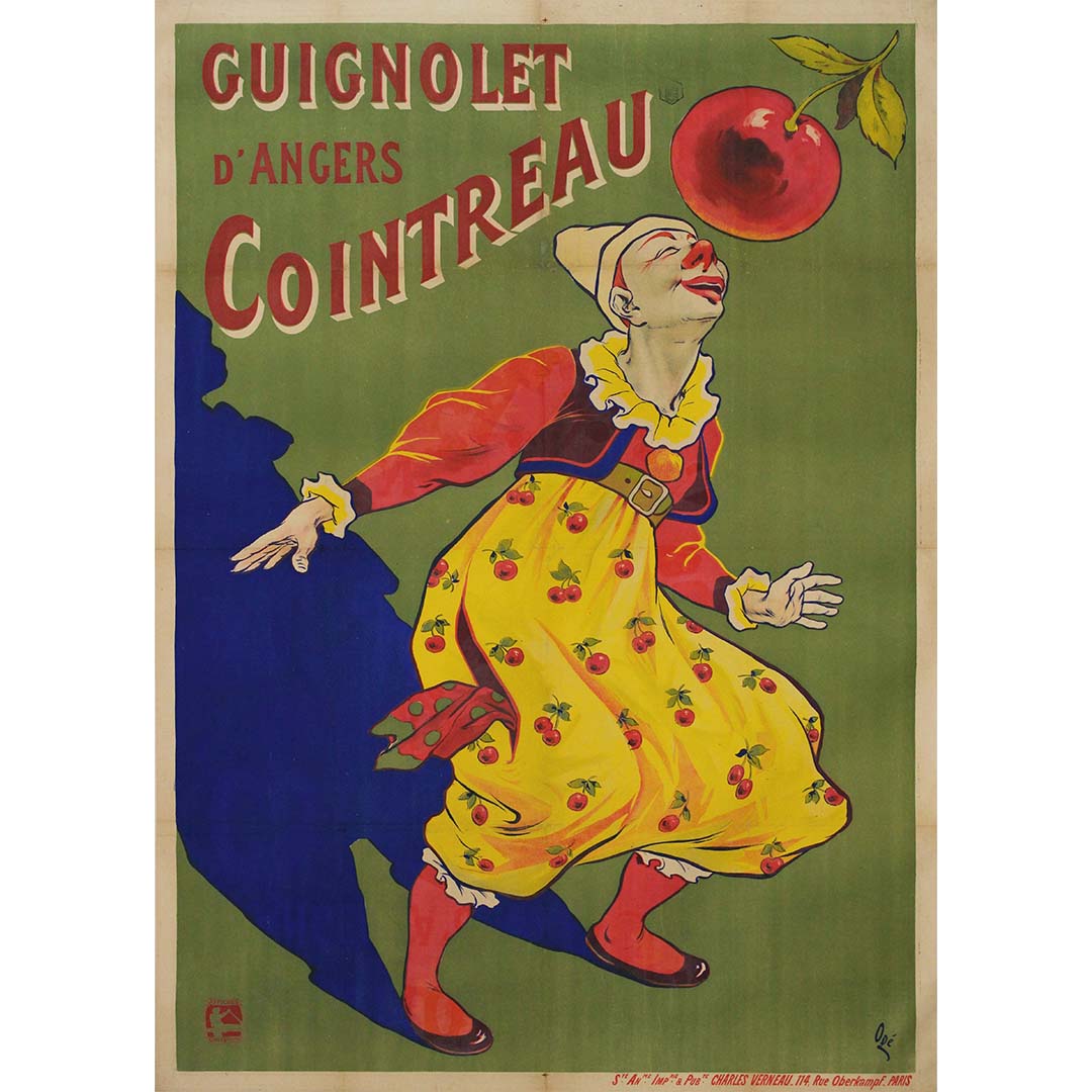 L'affiche de 1907 pour « Guignolet d'Angers Cointreau », mettant en scène un clown, illustre à merveille le talent d'Ogé pour insuffler joie et charme à son art. Grâce à une palette de couleurs vives et enjouées et à un dessin empreint de fantaisie, l'affiche invite le spectateur dans un univers de gaieté et de convivialité. Le clown, avec son sourire malicieux, ajoute une touche d'excentricité délicieuse à la composition.