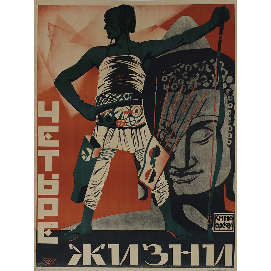 L'affiche originale du film « Quatre Vies » (Четыре Жизни), datant de 1923, est un exemple remarquable du graphisme soviétique des débuts, utilisé pour promouvoir le cinéma. Réalisée par Kino Moskva, cette affiche illustre le style artistique d'avant-garde alors en vogue en Union soviétique à la fin des années 1920. Le film, dont le réalisateur est inconnu, est vraisemblablement un récit dramatique explorant différents aspects de la vie, symbolisés par son titre.