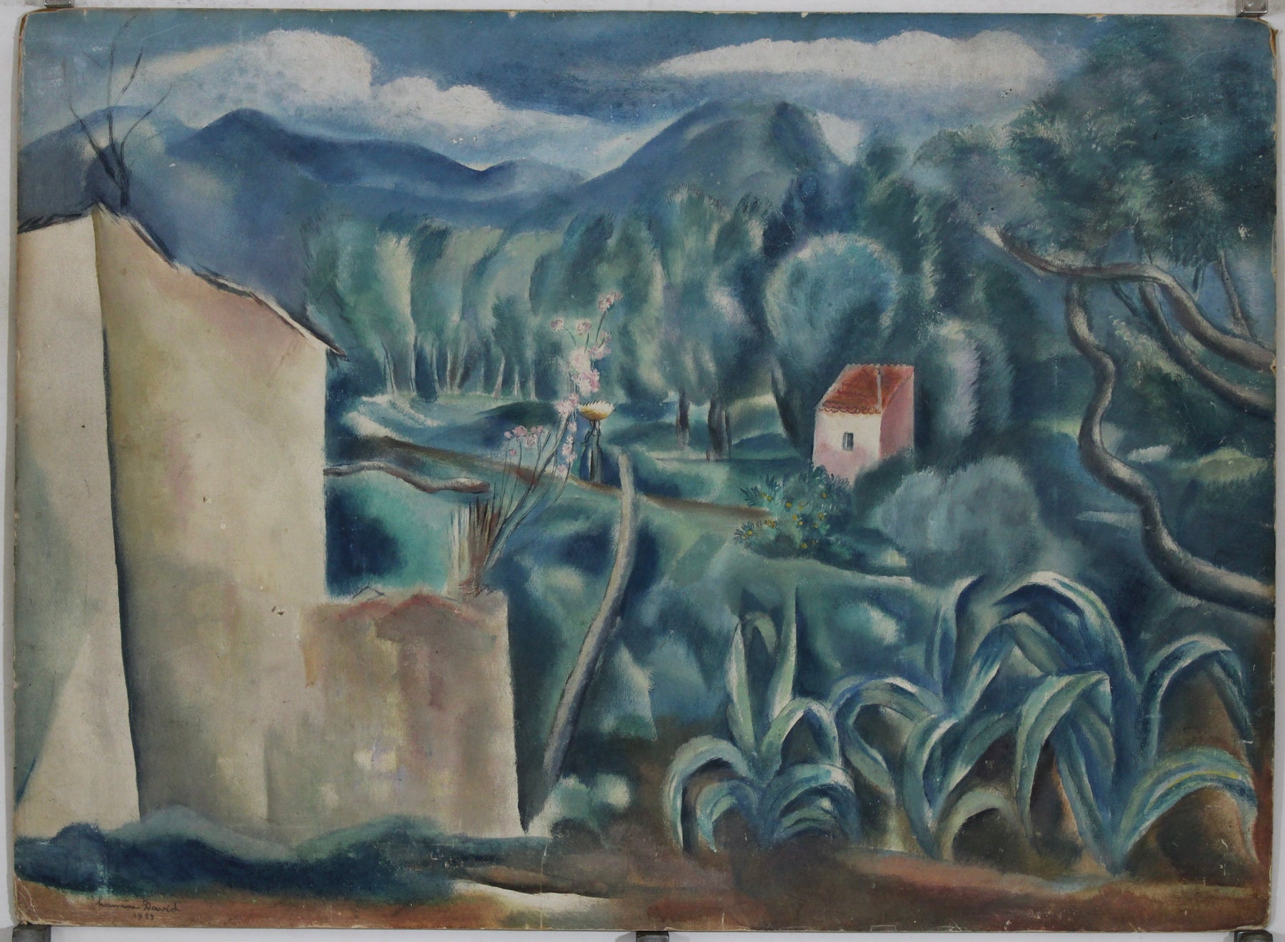 Prix régulier €2.000,00L'œuvre originale de 1923, intitulée « Campagne provençale » et signée Hermine David, est une peinture saisissante représentant le paysage pittoresque de Provence. Réalisée à la gouache et à l'huile sur panneau, elle se distingue par la richesse de ses textures et l'éclat de ses couleurs, capturant la beauté naturelle et la sérénité du paysage provençal.
