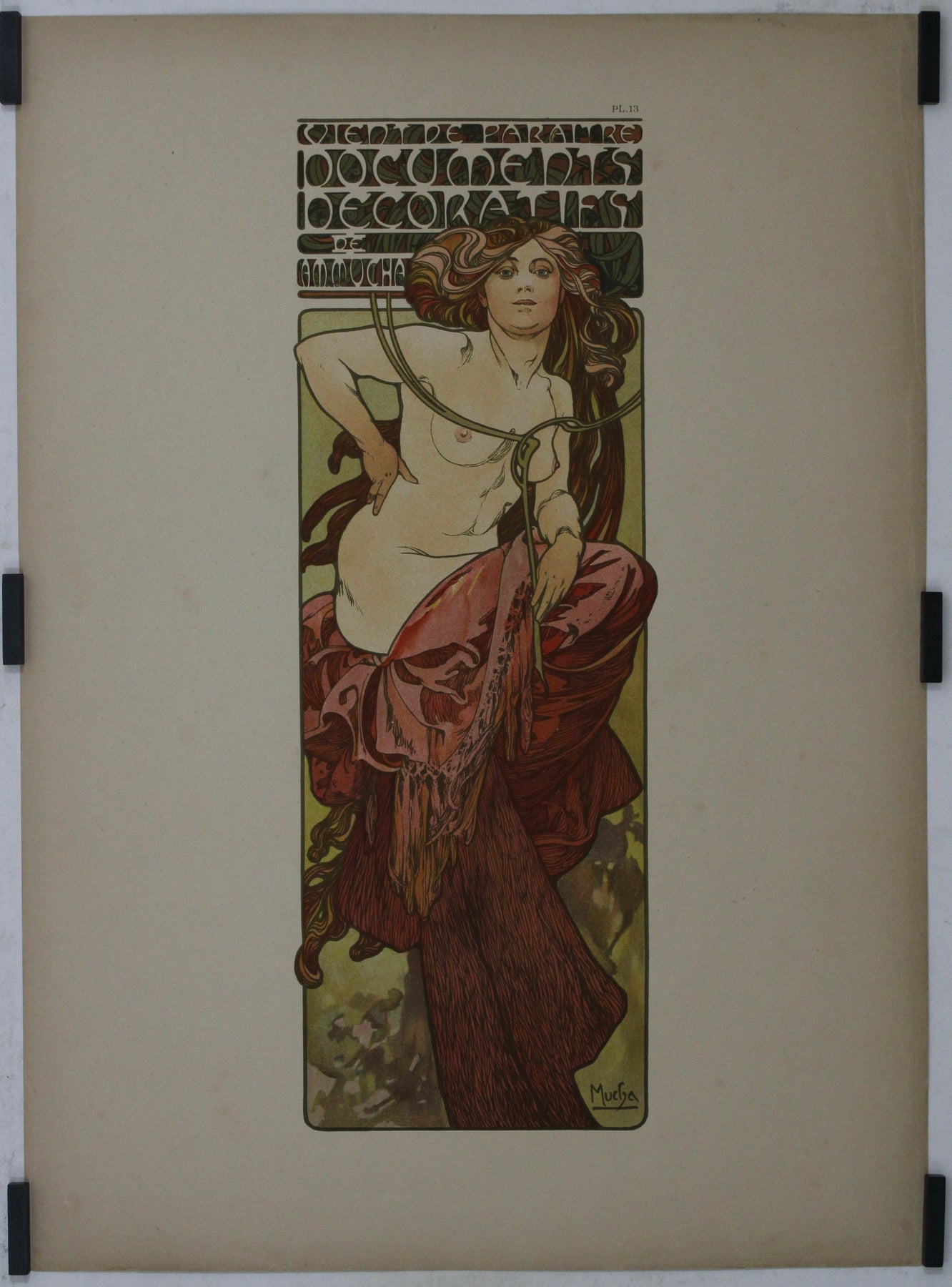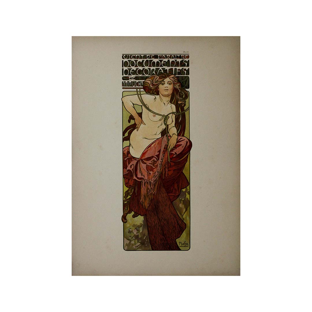 « Documents décoratifs » est un recueil des créations emblématiques de Mucha, rassemblant une multitude de détails complexes, de formes organiques et une célébration de la beauté féminine. Chaque page de ce chef-d'œuvre témoigne de l'engagement de Mucha à créer un art non seulement visuellement enchanteur, mais aussi empreint d'une profonde signification.