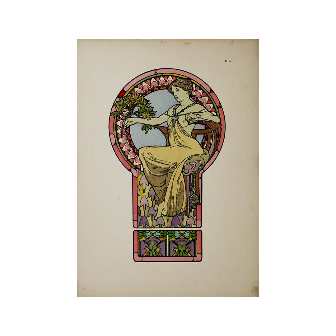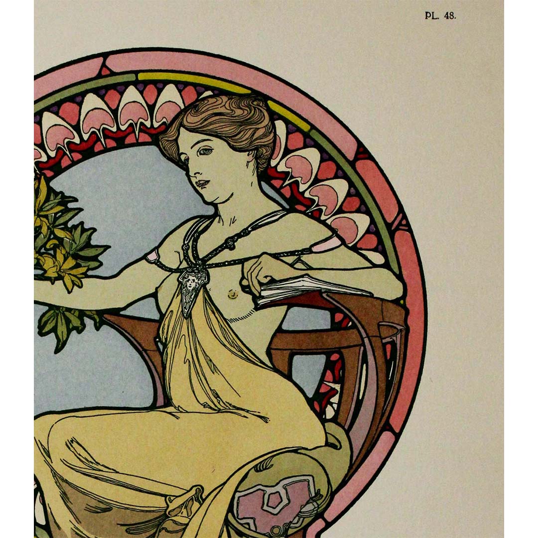 Le nom d'Alphonse Mucha brille comme celui d'un artiste visionnaire qui a marqué de son empreinte indélébile l'esthétique du début du XXe siècle. En 1902 paraît « Documents décoratifs », ouvrage fondamental édité par Émile Lévy et imprimé à Paris, cœur artistique du monde. Ce recueil d'estampes exquises témoigne du style singulier de Mucha et de son influence considérable sur les arts décoratifs.