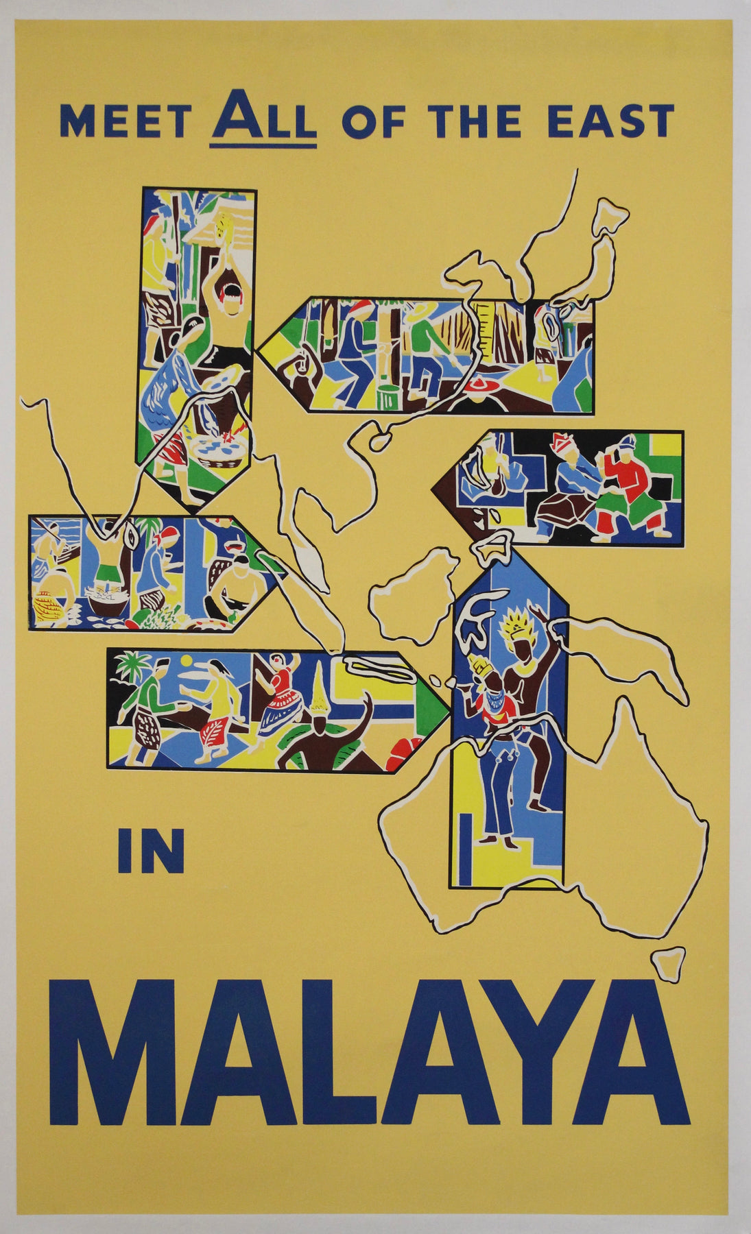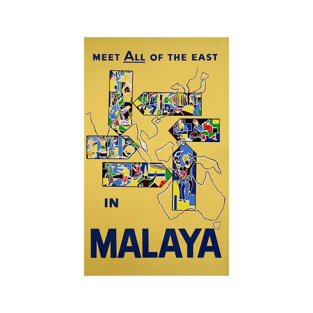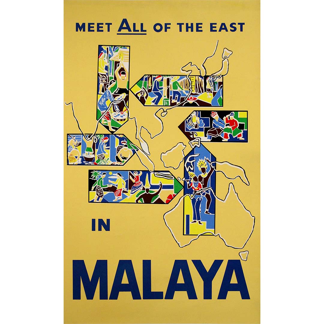 Cette affiche illustre parfaitement la publicité touristique du milieu du XXe siècle, une époque où le tourisme était perçu comme une porte d'entrée vers la découverte de nouvelles cultures et du monde. Elle capture cet esprit d'exploration, invitant les voyageurs à visiter une région du monde de plus en plus accessible et fascinante grâce au statut croissant de la Malaisie comme centre culturel et économique de l'Asie du Sud-Est.