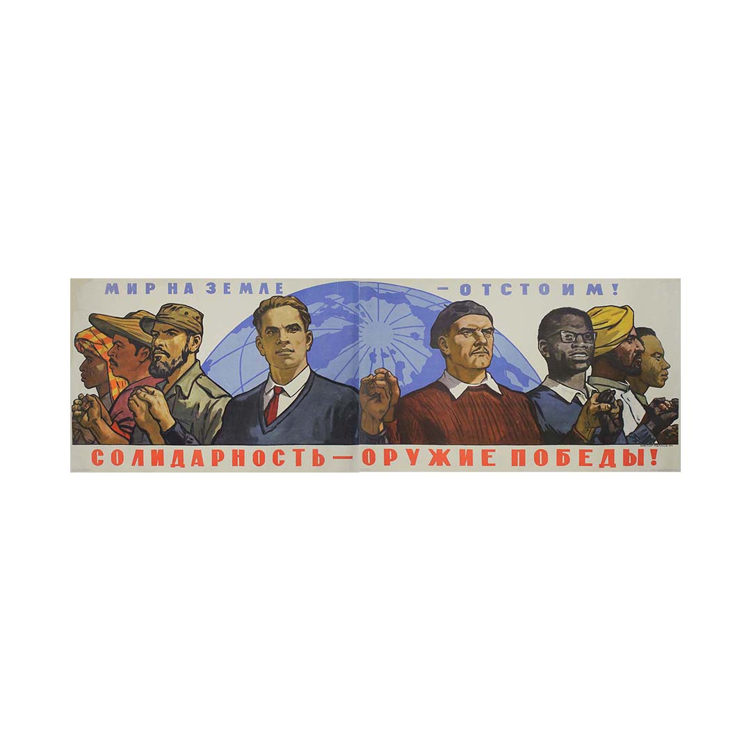 Cette affiche a été produite durant une période charnière de la Guerre froide, marquée par d'intenses tensions géopolitiques entre l'Union soviétique et le bloc occidental, mené par les États-Unis. Le début des années 1960 a été marqué par plusieurs événements clés, dont la crise des missiles de Cuba en 1962, qui a failli déclencher une guerre nucléaire. Dans ce contexte, la propagande soviétique a mis l'accent sur la paix et la solidarité, présentant l'URSS comme un champion de la paix mondiale et de l'anti-impérialisme.