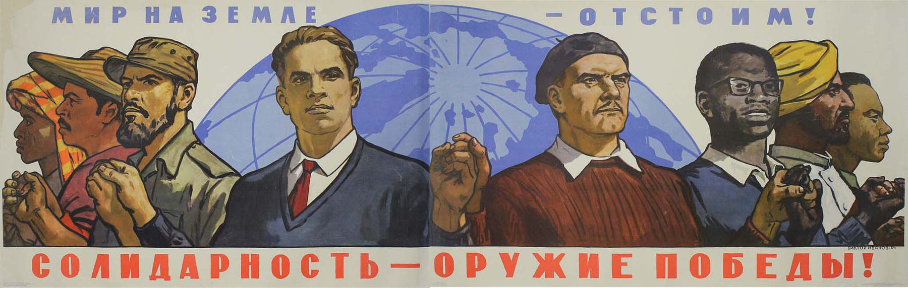 L'affiche de 1964 de Viktor Semenovich Ivanov est une illustration saisissante de l'art de propagande soviétique. Elle résume les luttes idéologiques de l'époque et l'engagement de l'Union soviétique à soutenir les mouvements de libération internationaux. Par la force de ses images et la puissance de son message, cette affiche demeure un témoignage historique, reflétant les espoirs, les combats et les aspirations d'une période charnière du XXe siècle.