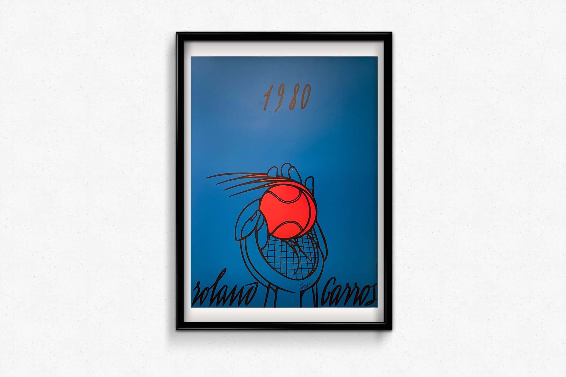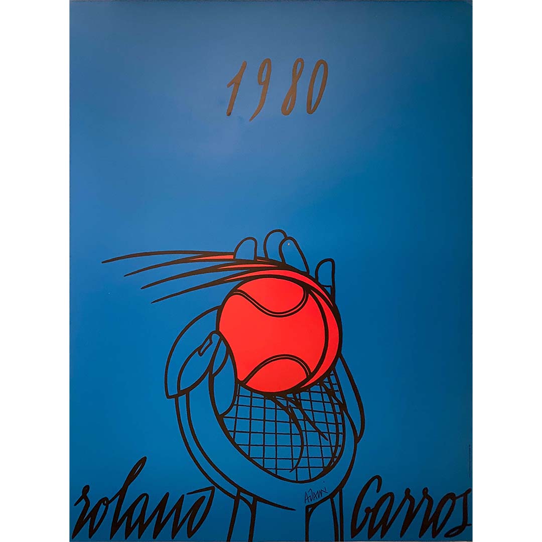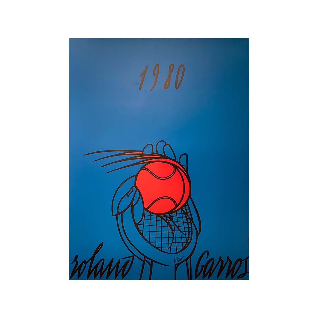 Magnifique affiche promotionnelle pour l'Open de France de tennis de 1980 (Tournoi de Roland-Garros), l'un des quatre tournois du Grand Chelem. Depuis 1980, la FFT (Fédération Française de Tennis), en partenariat avec la Galerie Lelong, commande chaque année à un artiste la création d'une affiche pour promouvoir le tournoi. La FFT a fait appel à des artistes de renom pour la réalisation de ces affiches, notamment Valerio Adami, qui a réalisé un travail remarquable pour cette première affiche.