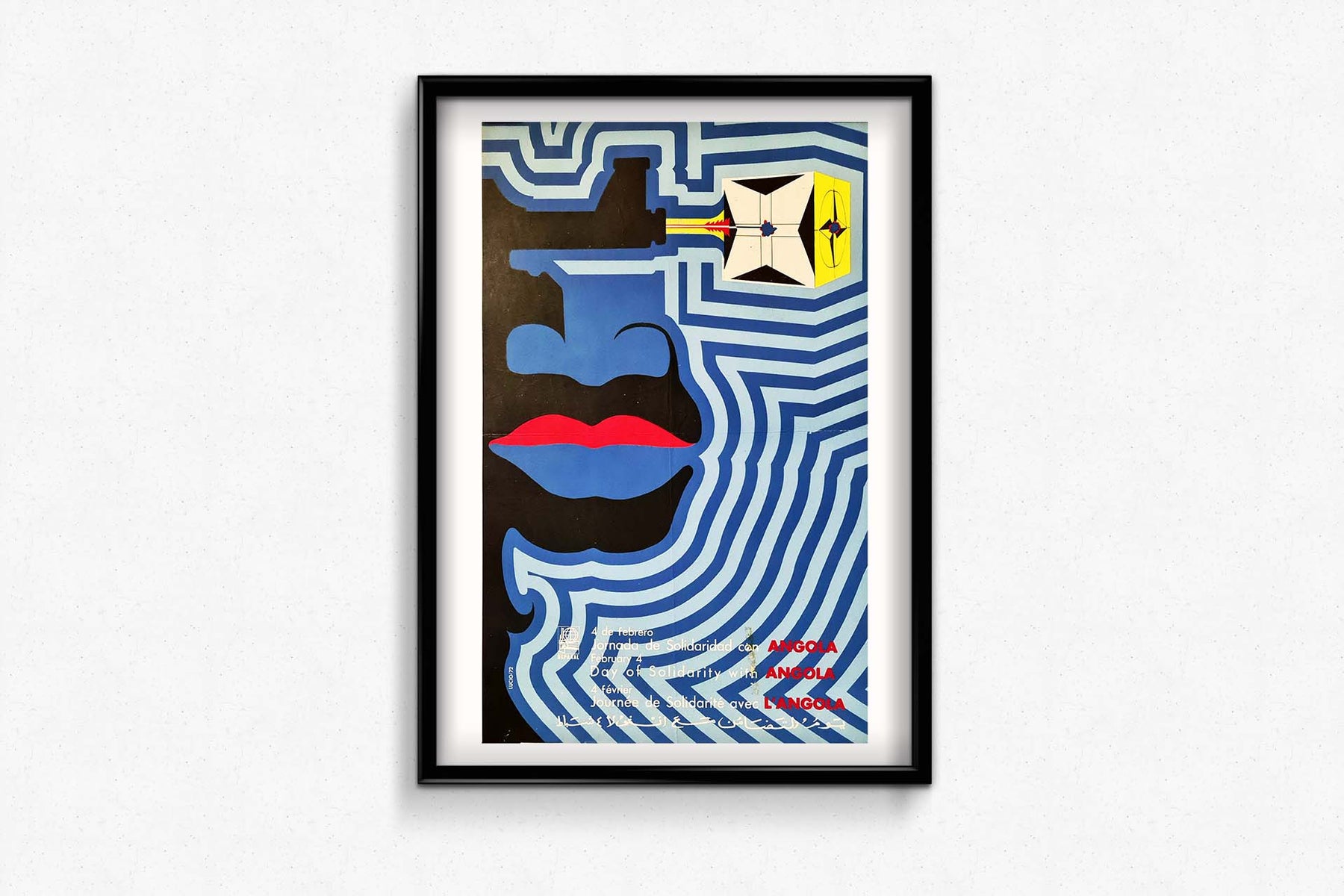 Cette magnifique affiche a été réalisée par Lucio Martinez en 1972. Elle intervient pour soutenir la révolution communiste en Angola.