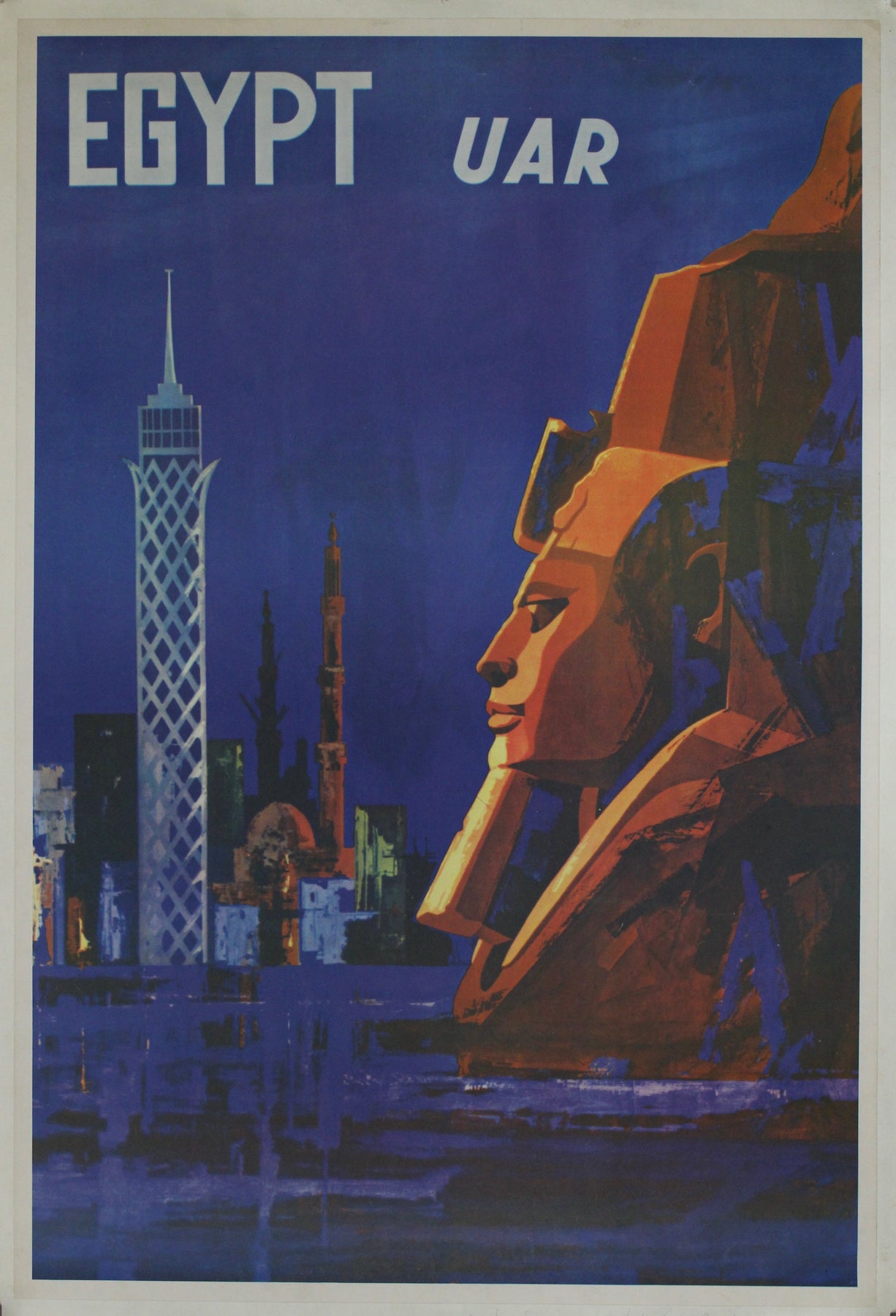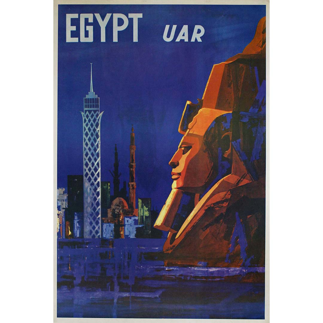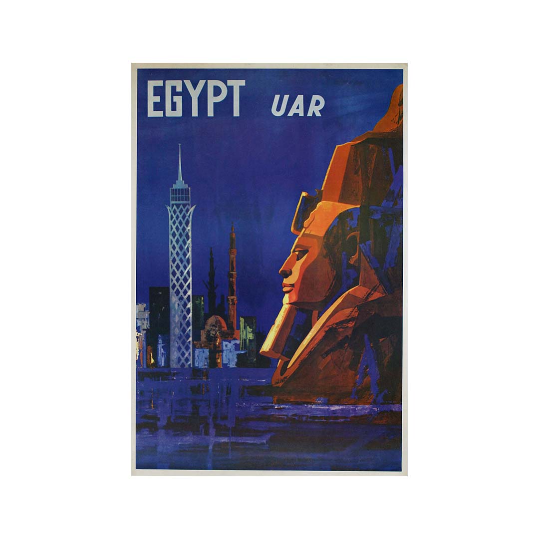 L'affiche égyptienne des années 1960 (République arabe unie) offre une représentation fascinante d'un voyage à travers les merveilles antiques de cette terre d'une richesse culturelle exceptionnelle. Plus qu'un simple support publicitaire, cette affiche emblématique est une véritable invitation à explorer le charme intemporel de l'Égypte.