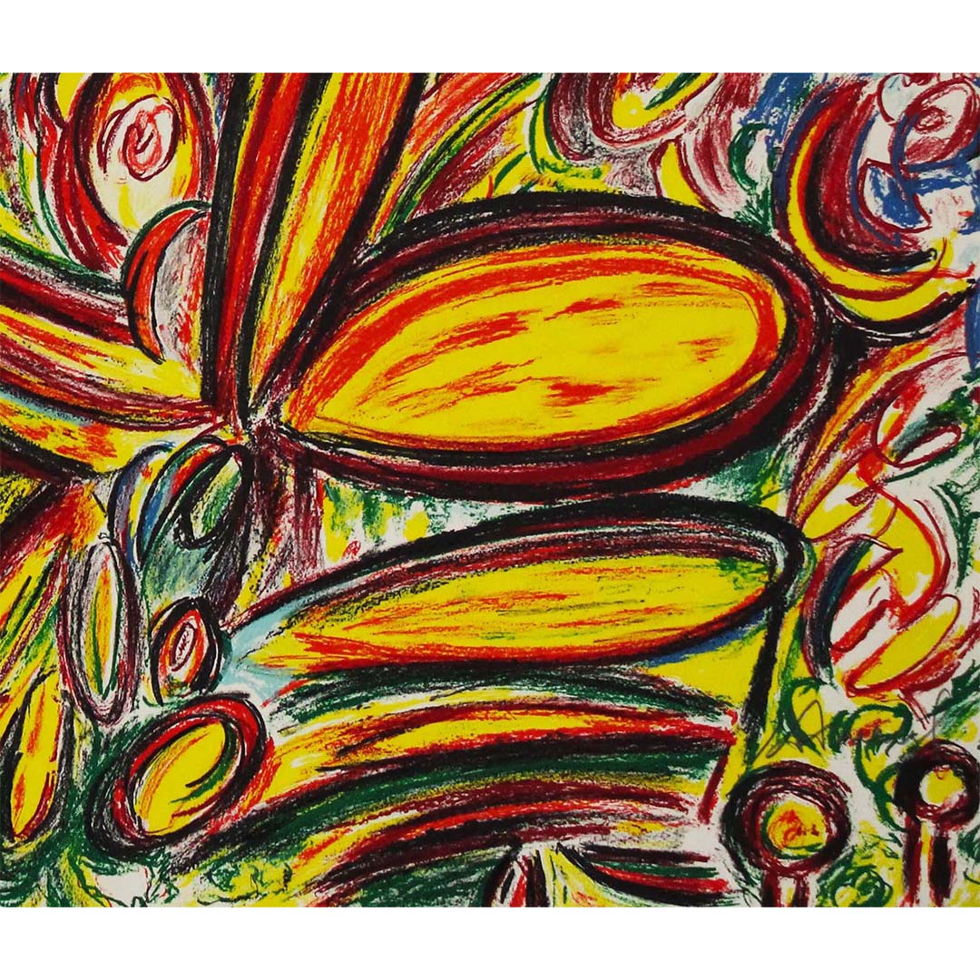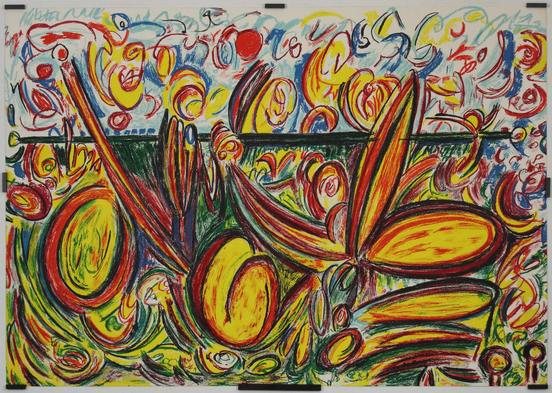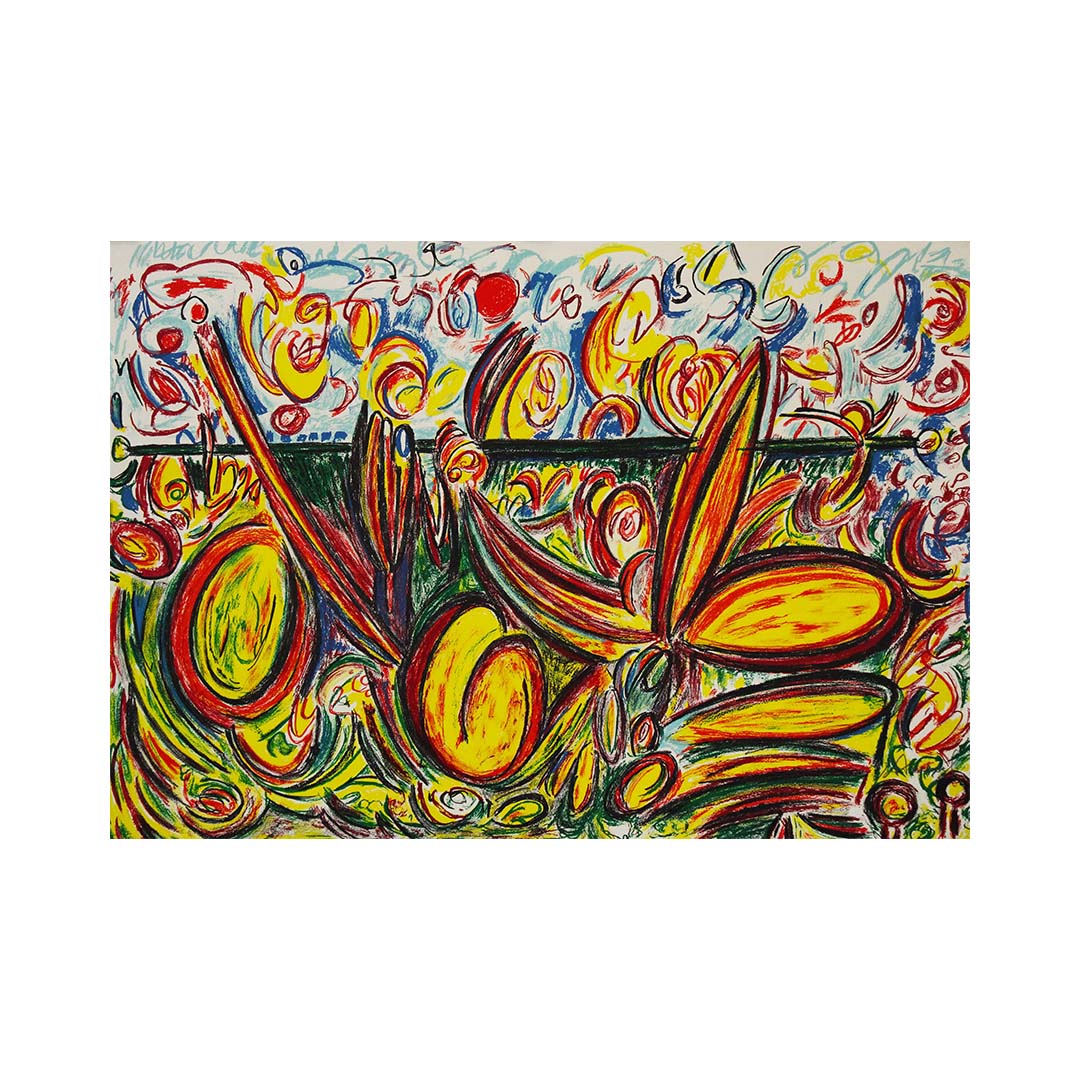 Au premier abord, « Les Fleurs » captive par la profusion de ses images botaniques et le dynamisme de sa composition. Chaque fleur déborde de vitalité, emplissant la toile d'une explosion de couleurs et de textures. Pourtant, sous cette beauté apparente se cache une exploration plus profonde de la vie, de la mort et de la nature cyclique de l'existence.