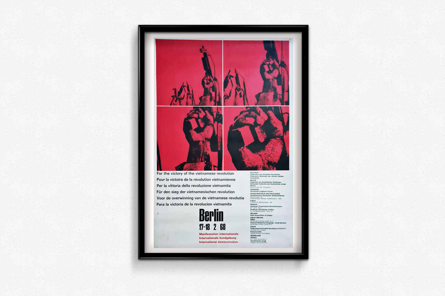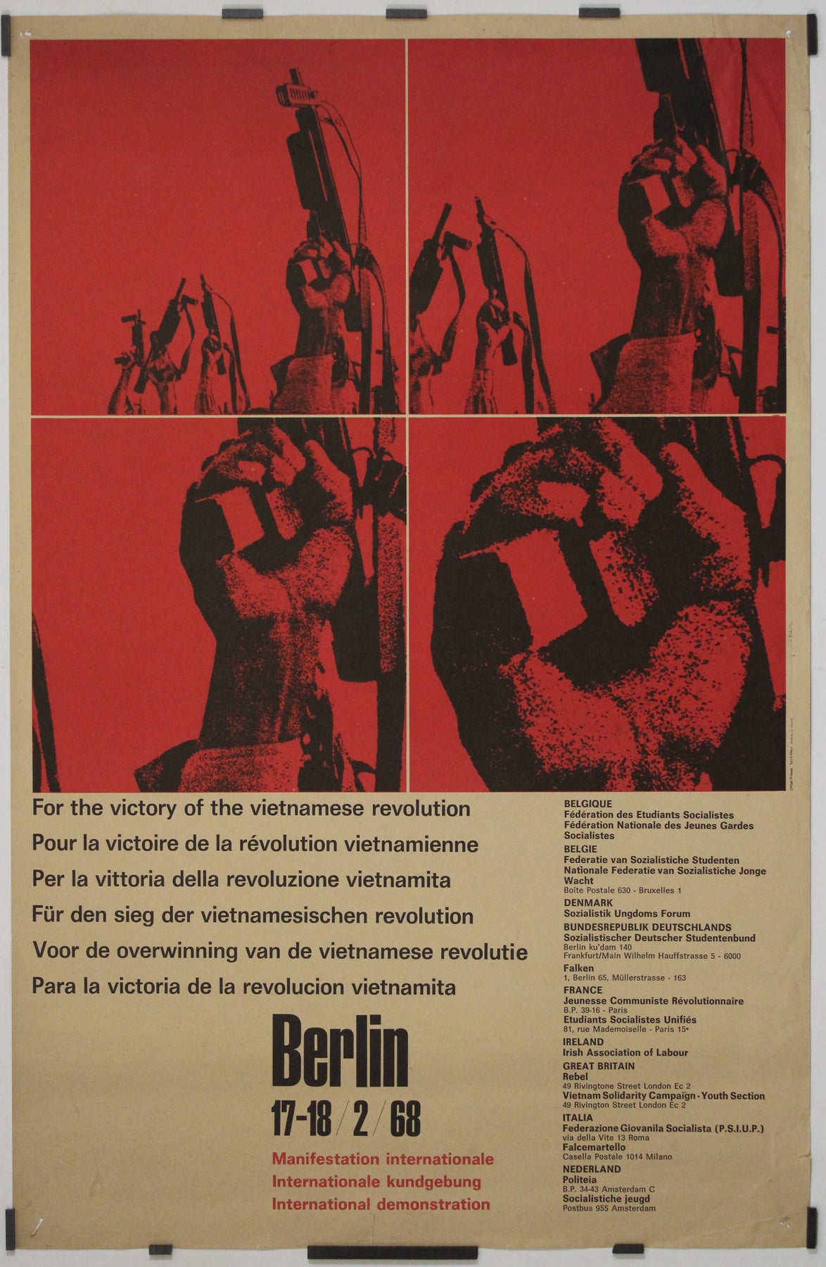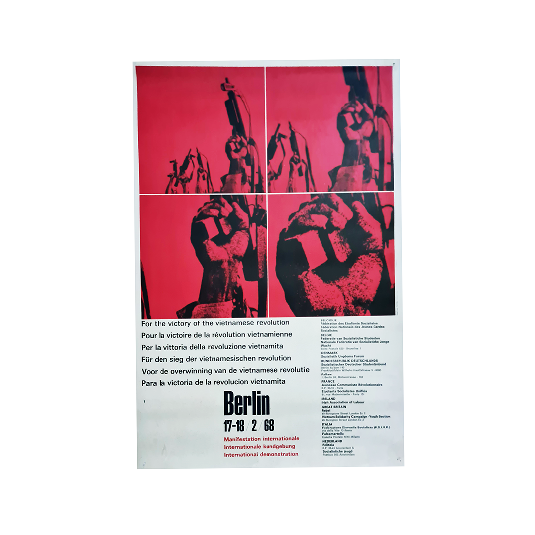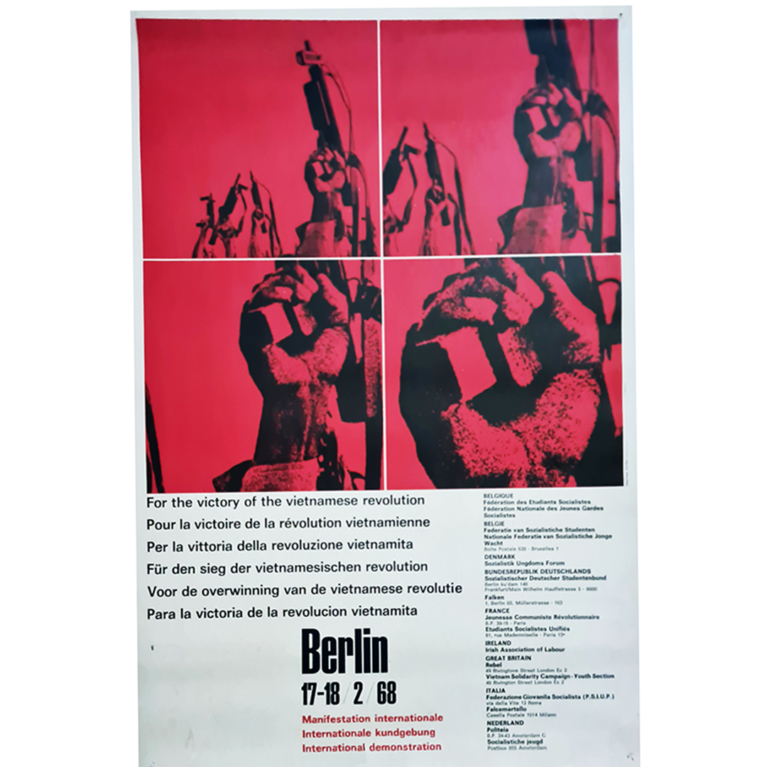 Affiche politique originale réalisée en 1968 pour célébrer la victoire de la révolution vietnamienne. Il s'agissait d'une manifestation internationale organisée à Berlin.