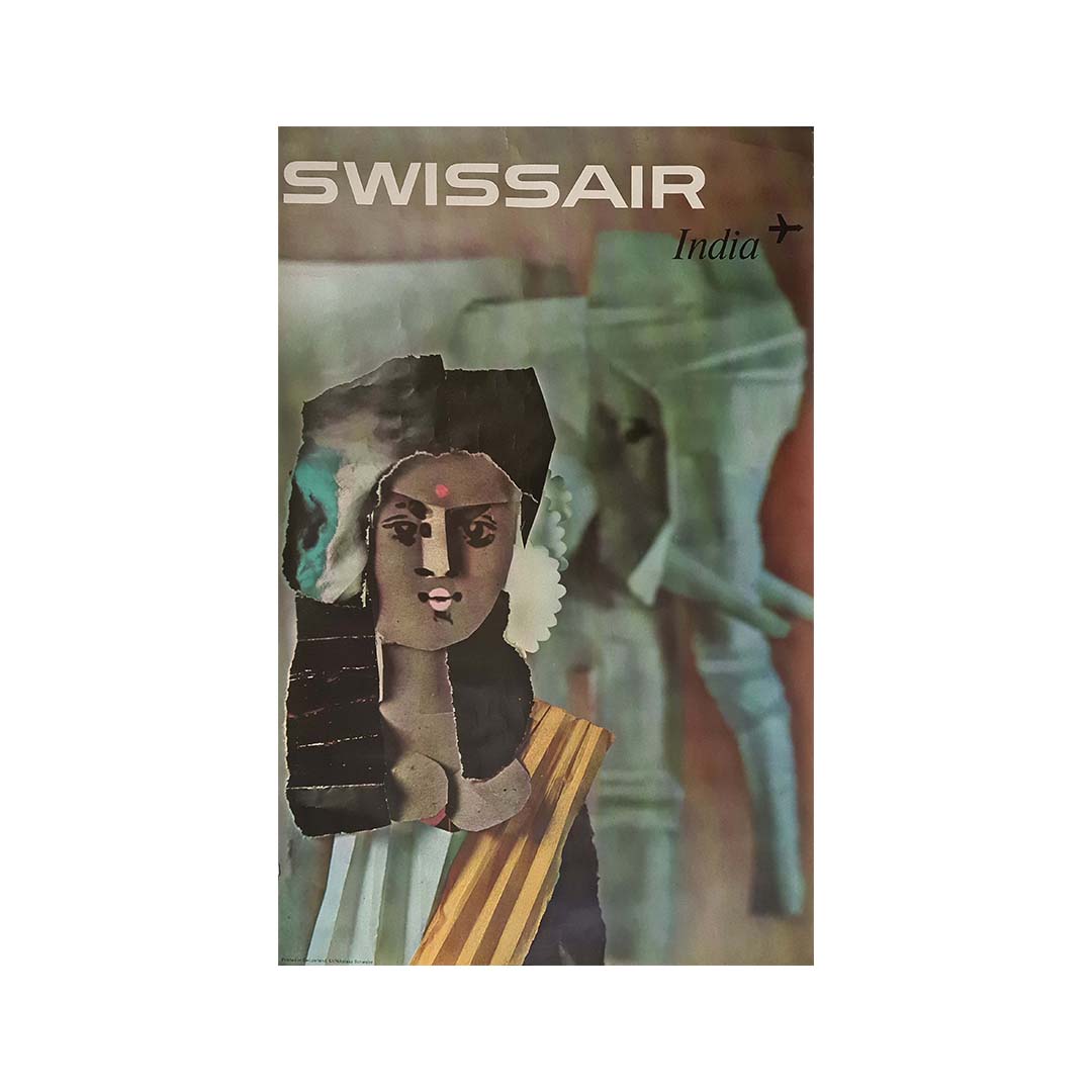 Cette magnifique affiche a été réalisée par Nikolaus Schwabe vers les années 1960 pour promouvoir les voyages et les vols de Swissair vers l'Inde.