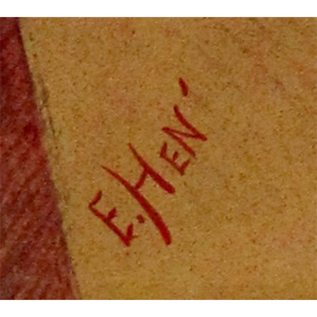 On sait peu de choses sur E. Hen, mais ses lithographies témoignent de la richesse de la culture théâtrale de l'époque avec une précision stylistique et une clarté publicitaire remarquables. Ses affiches mêlent souvent portraits et éléments narratifs pour créer un récit visuel immédiat qui captive aussi bien les spectateurs que les passants.