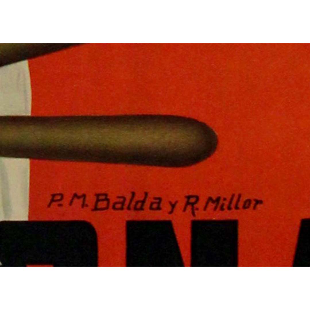 Prix régulier €1.200,00L'affiche originale de 1951 pour les célèbres fêtes de San Fermín à Pampelune, créée par PM Balda y R. Millor, est un exemple vibrant et captivant de la publicité festive du milieu du XXe siècle. Cette affiche capture l'esprit et l'effervescence de cet événement annuel, surtout connu pour ses spectaculaires courses de taureaux (encierros) et ses célébrations exubérantes.