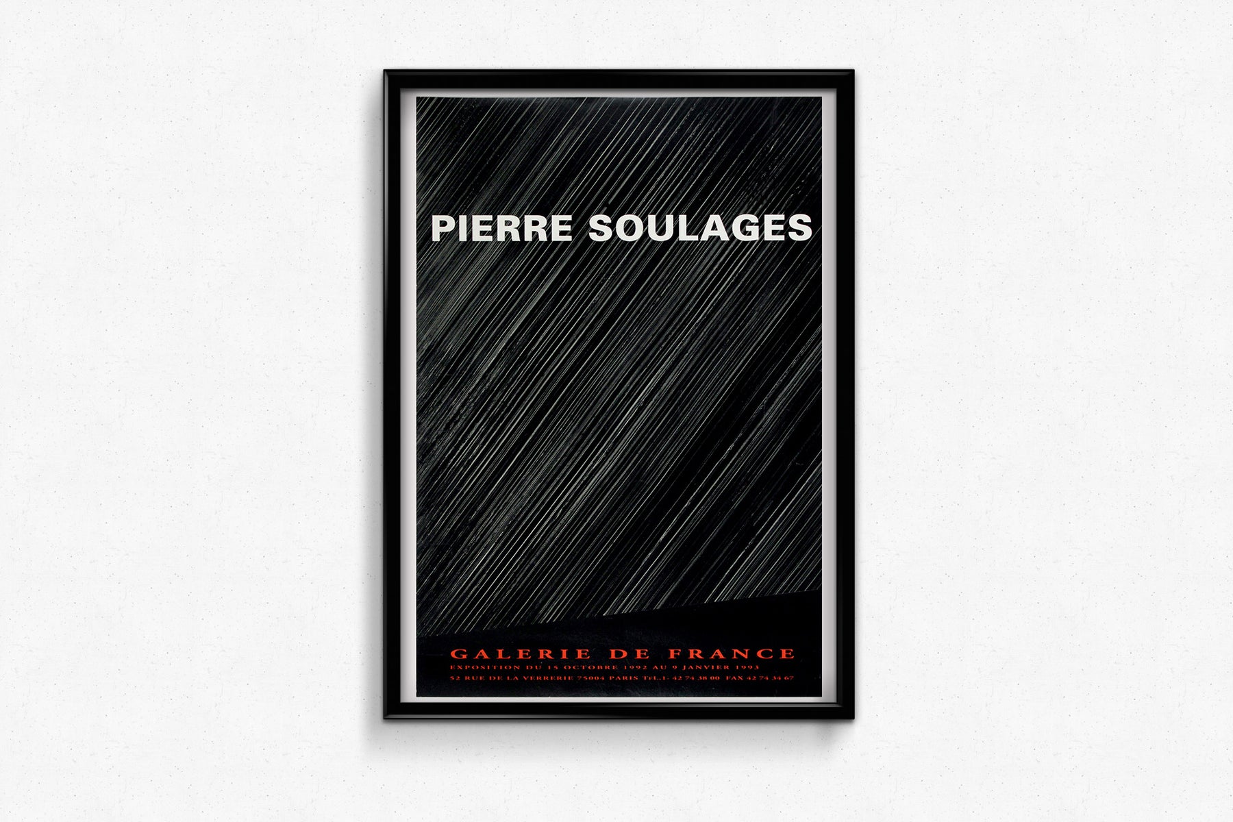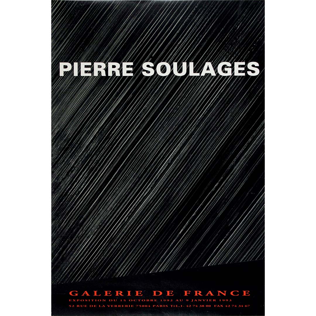 Les années 1990 ont été marquées par une reconnaissance continue pour Soulages, dont la carrière s'étendait déjà sur plusieurs décennies. À cette époque, sa réputation de « maître du noir » était bien établie, et les expositions de son œuvre étaient des événements très attendus dans le monde de l'art. La Galerie de France, située à Paris, était un lieu idéal pour un artiste de son envergure, réputée pour son engagement à présenter un art contemporain novateur.