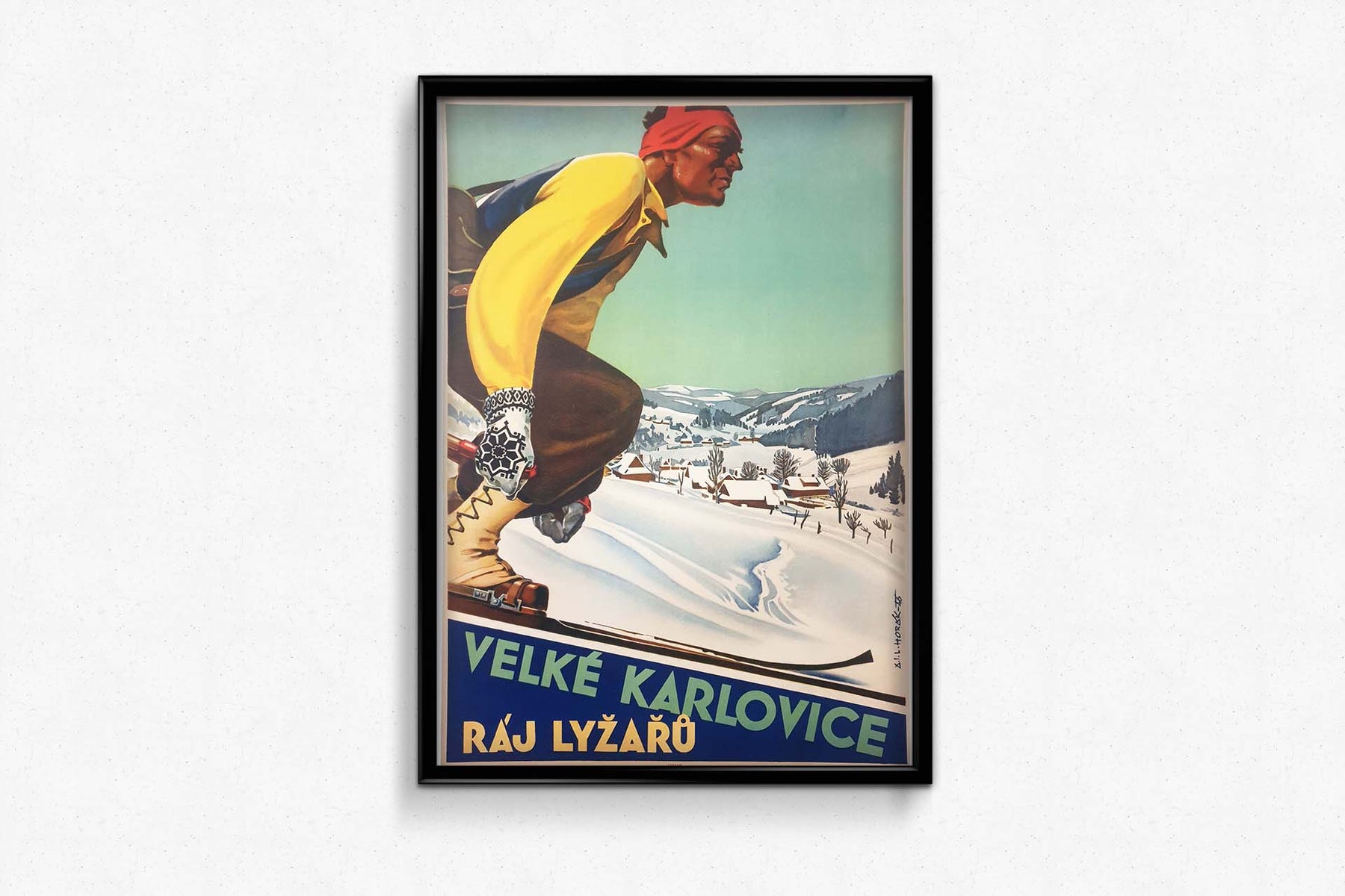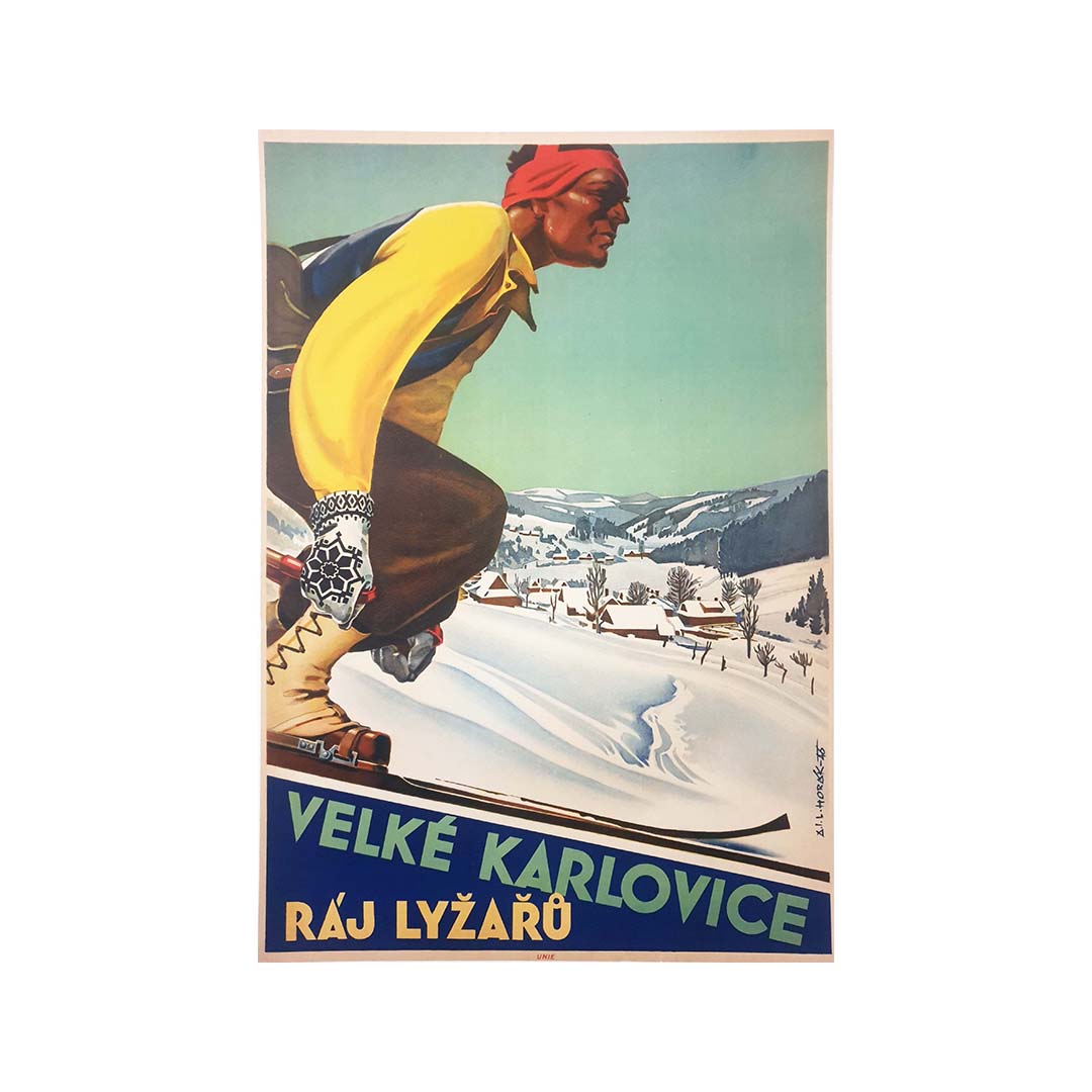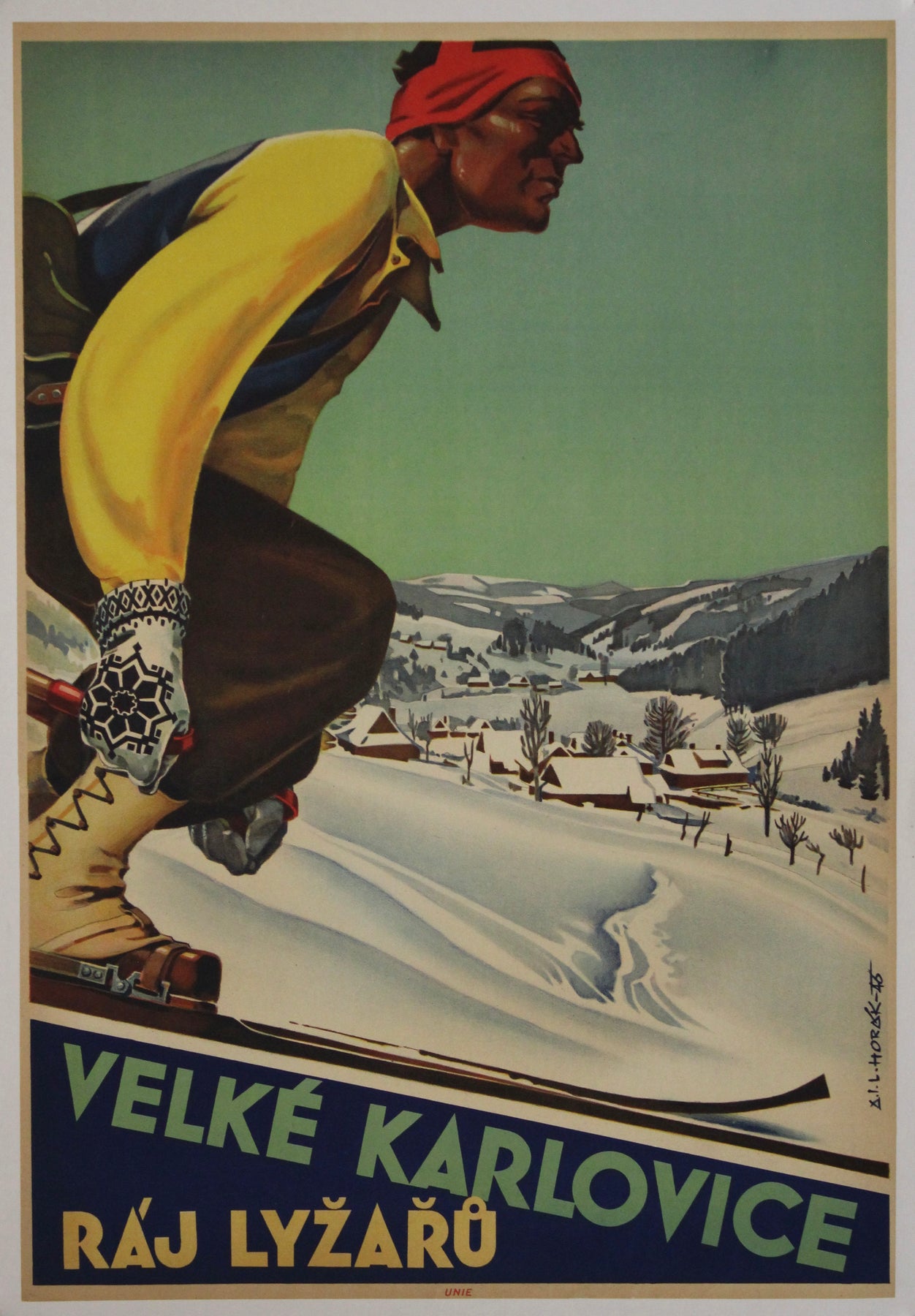 Belle affiche de ski tchèque de Ladislav Horak pour Velke Karlovice, Raj Lyzaru.