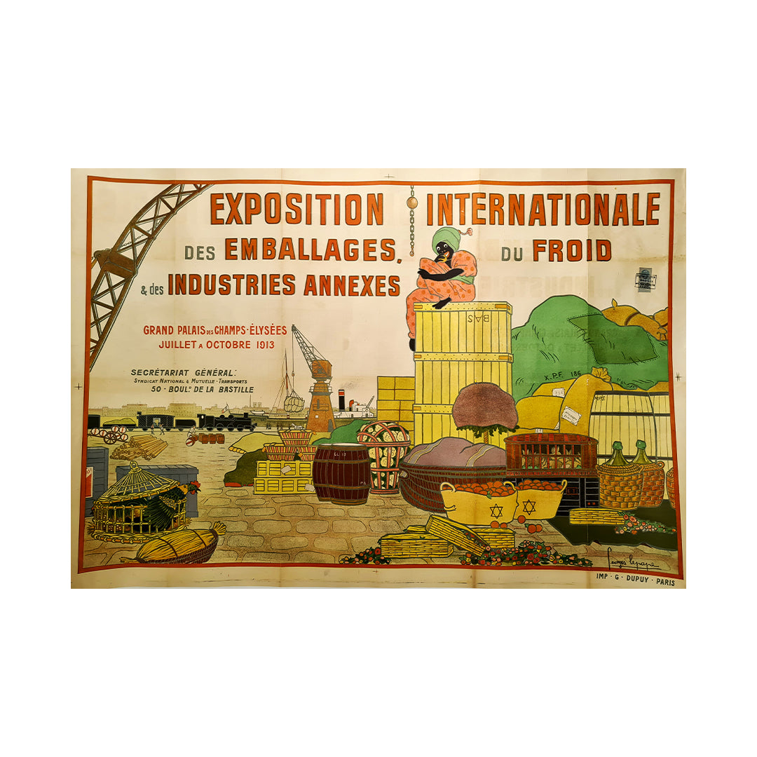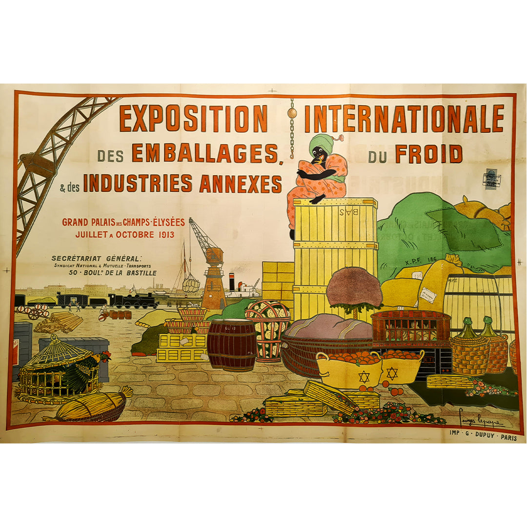 Très belle affiche pour l'Exposition internationale de l'emballage frigorifique et des industries connexes réalisée par Georges Lepape 🇫🇷 (1887-1971) en 1913. Georges Lepape était un créateur de mode, affichiste et graveur français.