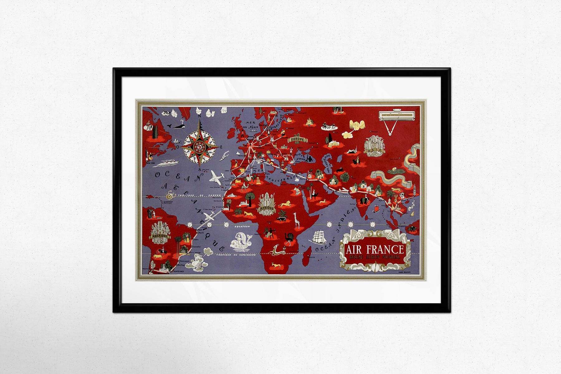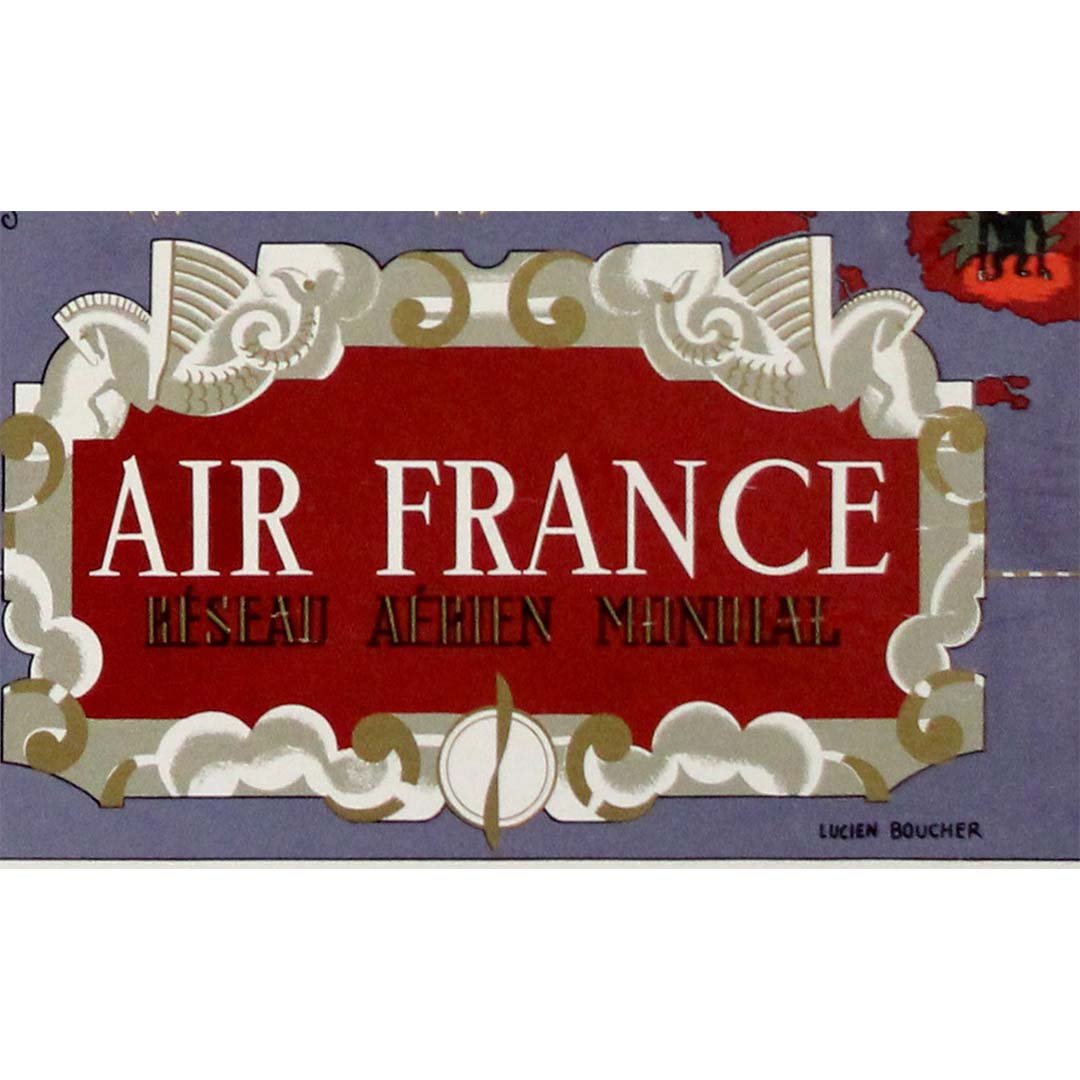 Cette affiche de Boucher est depuis devenue une pièce de collection très recherchée, admirée pour sa finesse artistique et son importance historique. Elle représente non seulement les ambitions internationales d'Air France, mais aussi une époque où les affiches de voyage étaient au cœur de la publicité, stimulant l'imagination et incitant à la découverte de nouveaux horizons. L'œuvre de Lucien Boucher demeure emblématique du design du milieu du XXe siècle, célèbre pour la précision de ses illustrations et son rôle dans la construction de l'identité visuelle d'Air France.