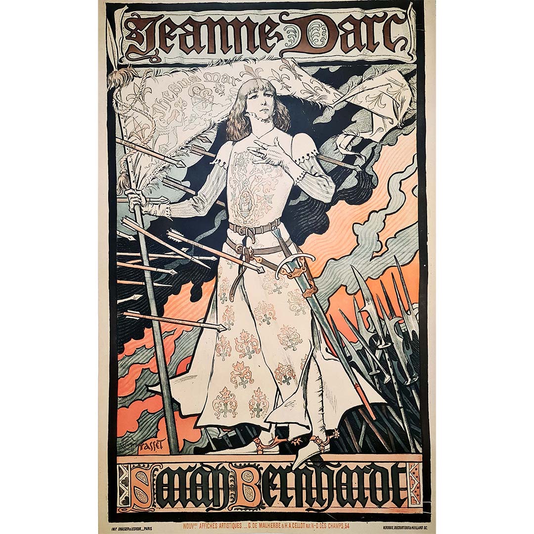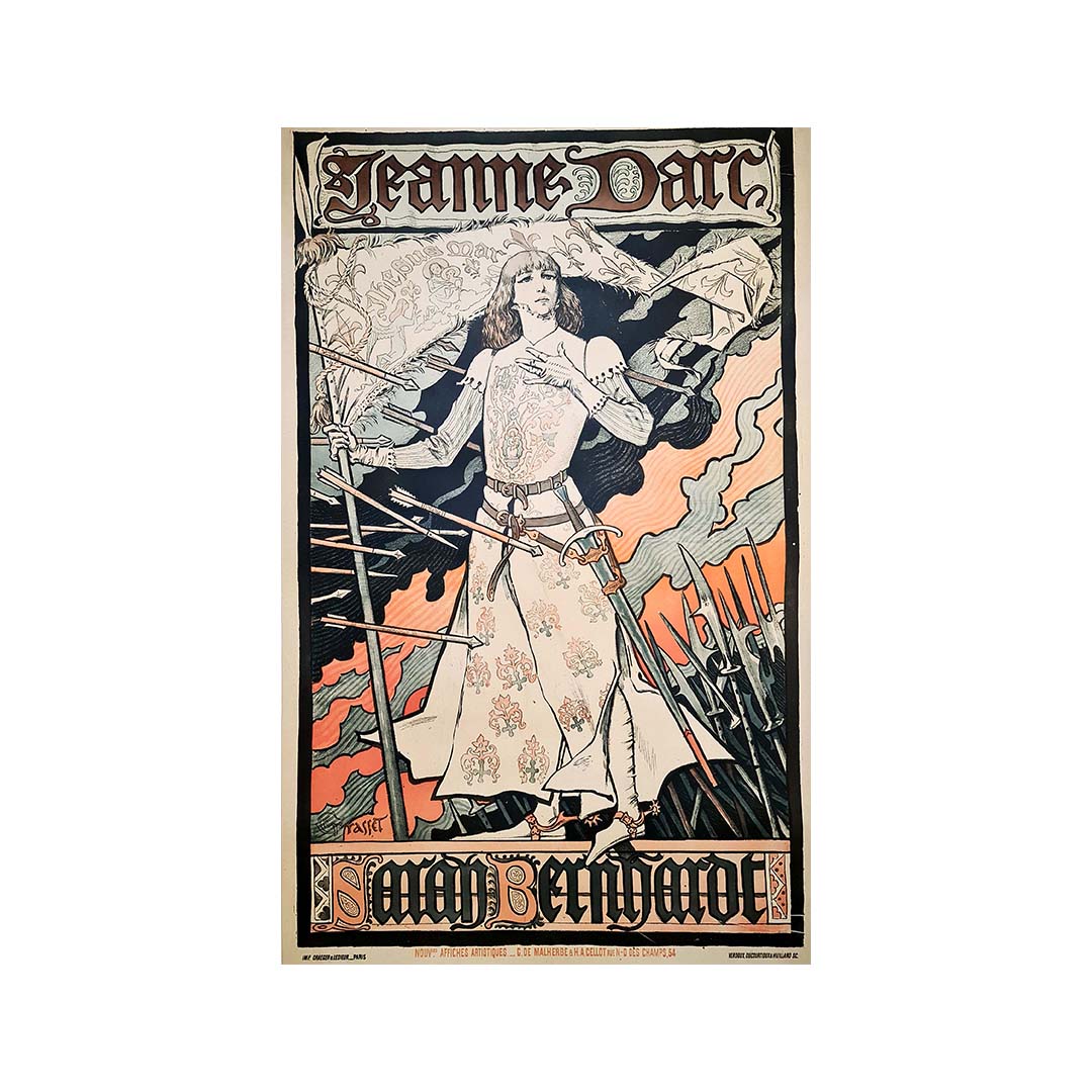 Cette affiche pour Jeanne d'Arc est particulièrement importante car elle est le fruit d'une collaboration qui a permis à Sarah Bernhardt de découvrir Alphonse Mucha ; elle souhaitait en effet qu'un nouvel artiste crée une affiche pour sa pièce à venir, Gismonda.