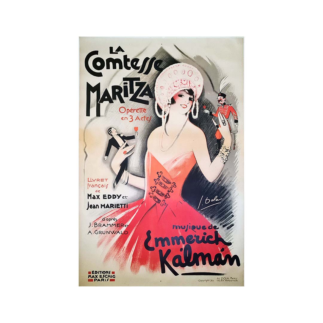 Affiche originale de 1930 de Georges Dola pour l'opérette La Comtesse Maritza