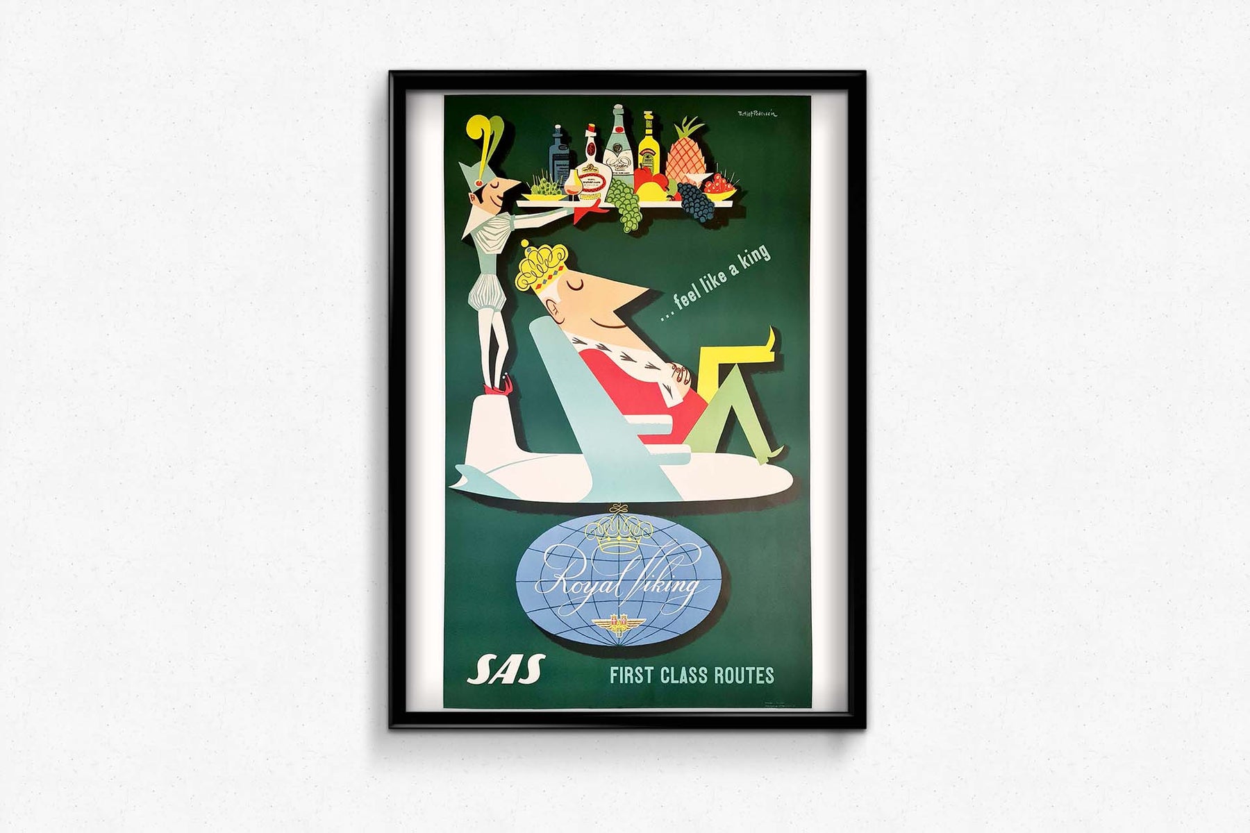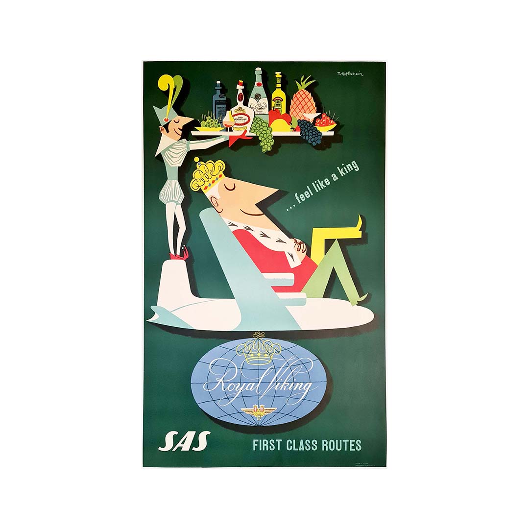 Magnifique affiche originale de Fritjof Pedersen (1923 - 2018) pour la Scandinavian Airlines System, en Suède SAS AB, une compagnie aérienne scandinave créée en 1946.