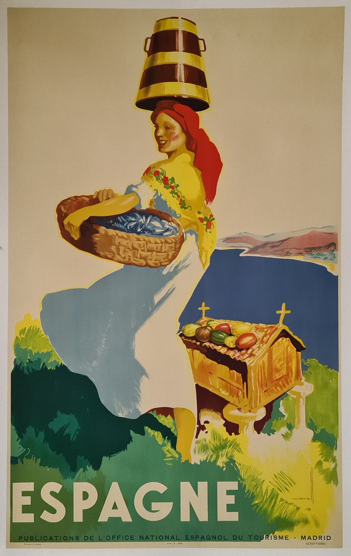 Affiche de voyage vintage originale réalisée par Morell en 1950 pour l'office national espagnol du tourisme.