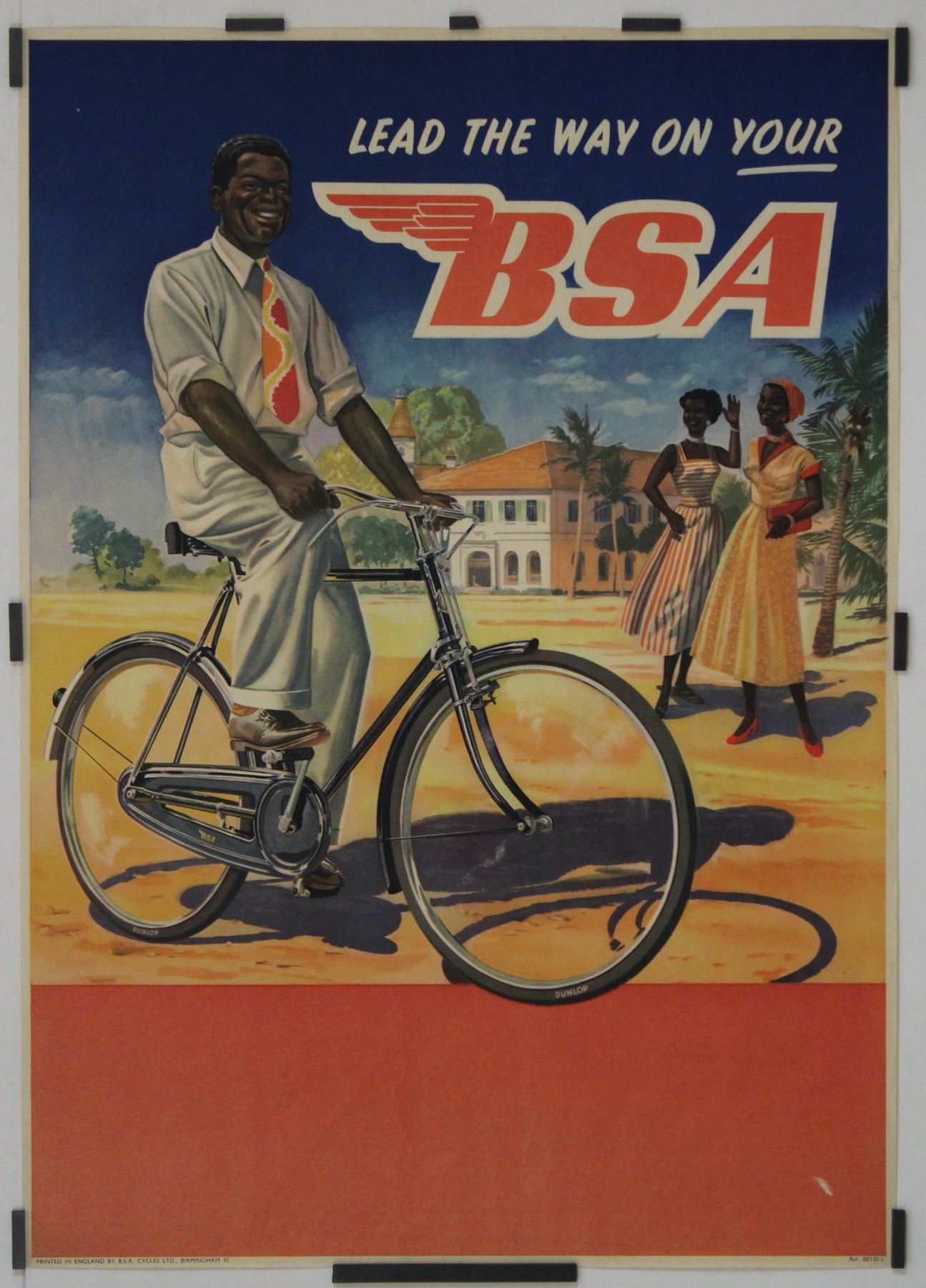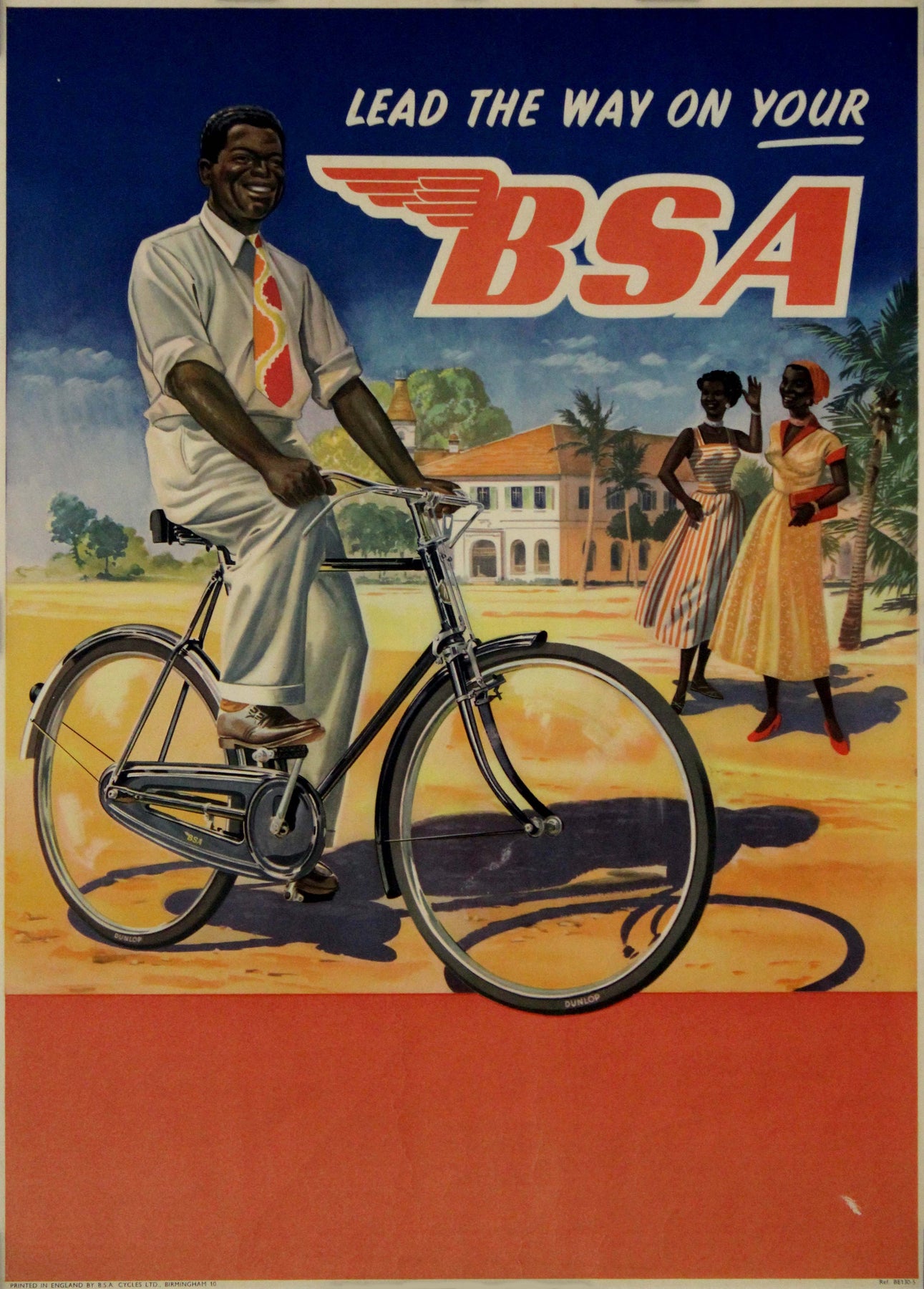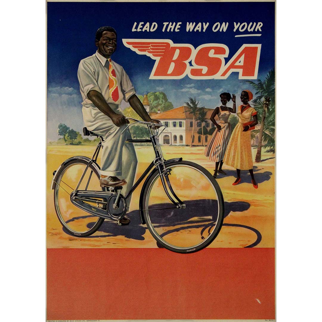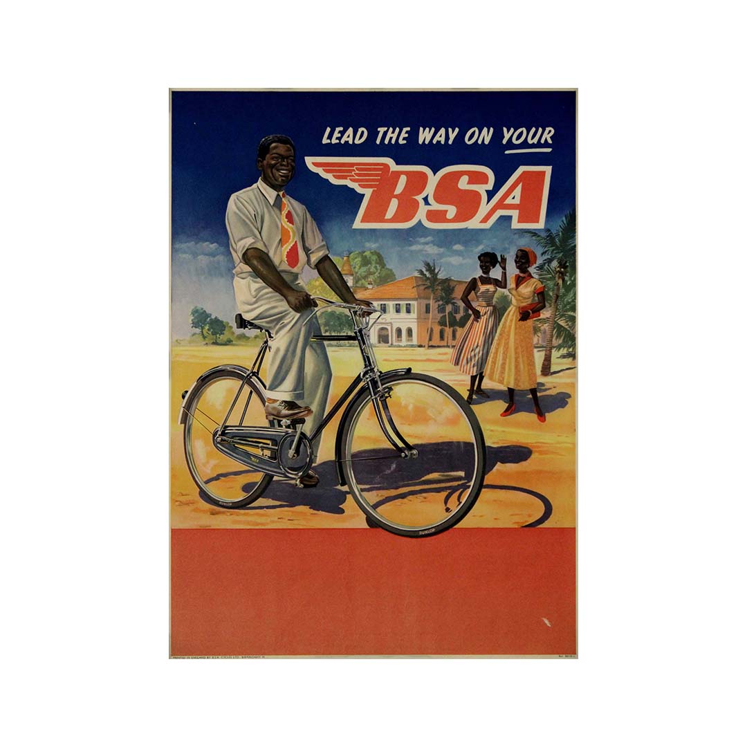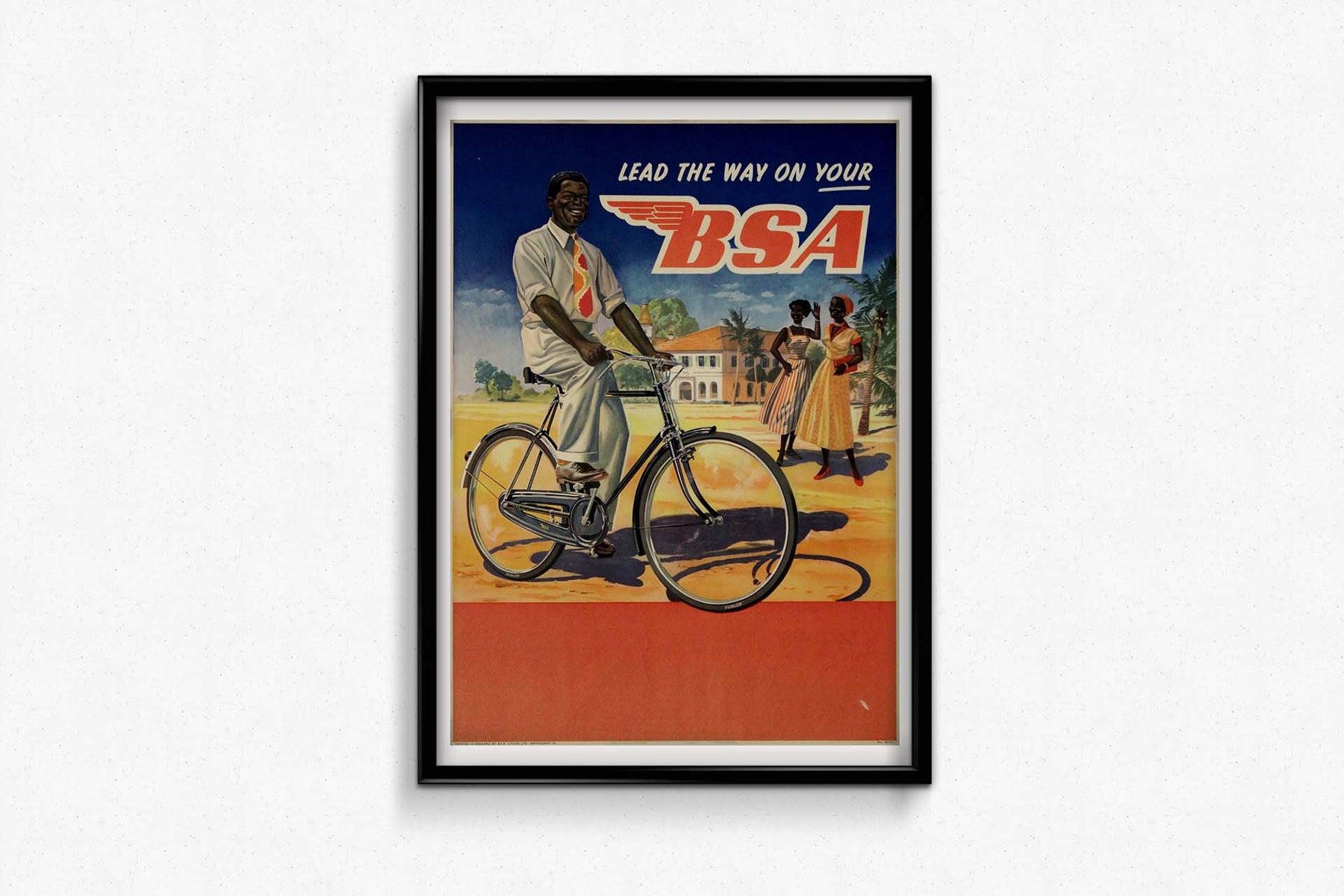 Les vélos BSA étaient réputés pour leur qualité de fabrication, leur fiabilité et leur design innovant, ce qui en faisait un choix populaire auprès des cyclistes de tous âges. Cette affiche témoigne de la réputation d'excellence de la marque et de son engagement à offrir aux cyclistes une expérience cycliste optimale.