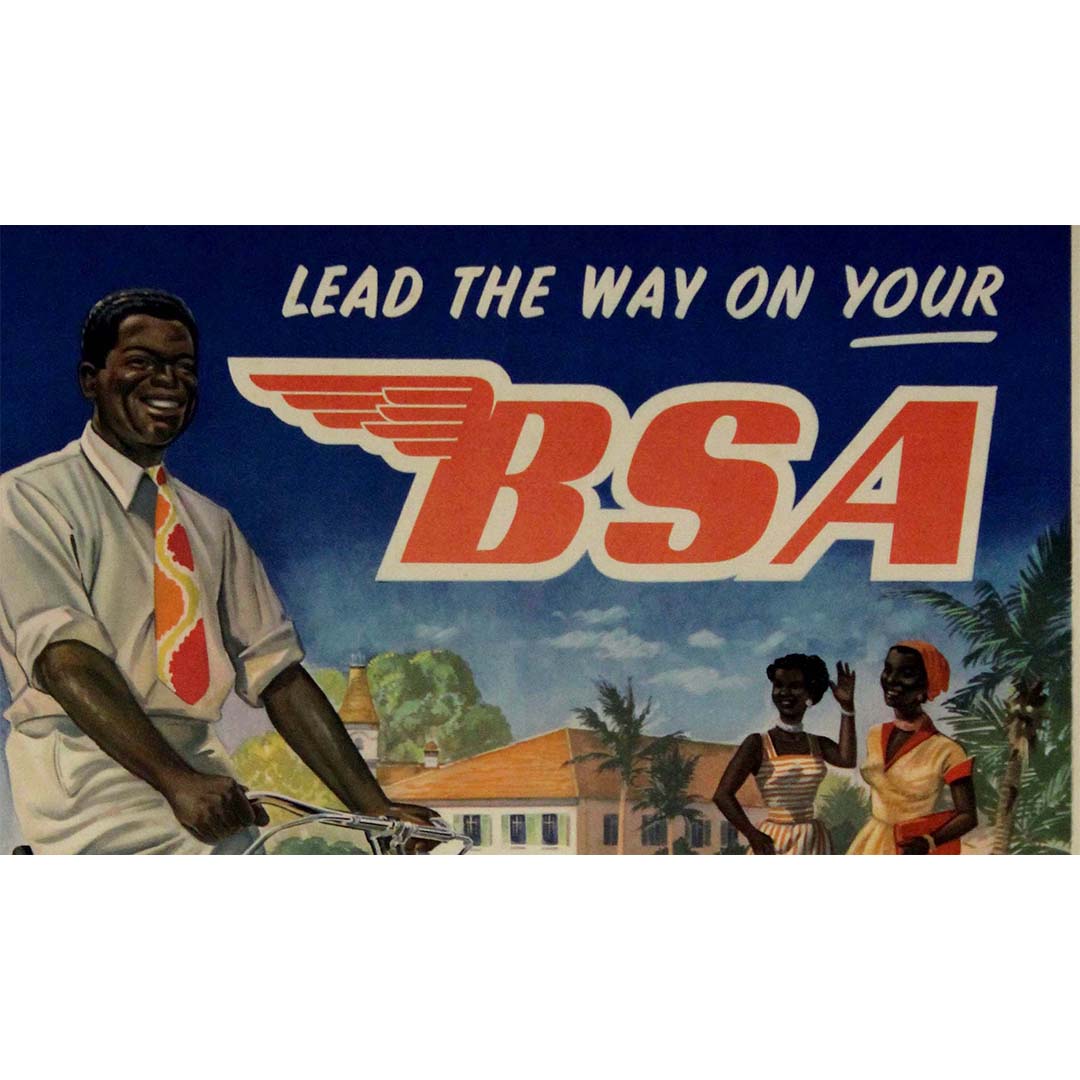 Avec sa typographie audacieuse et ses images dynamiques, l'affiche capte l'attention et invite à s'imaginer vivre des aventures palpitantes à vélo BSA. Les couleurs vives et le design épuré évoquent la vitesse et le mouvement, soulignant l'expérience exaltante que procure la conduite d'un vélo BSA.