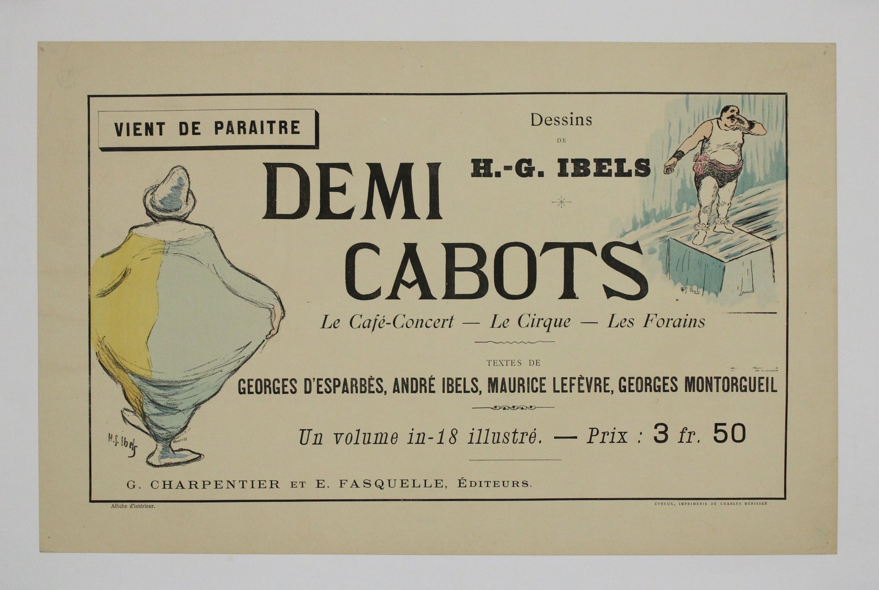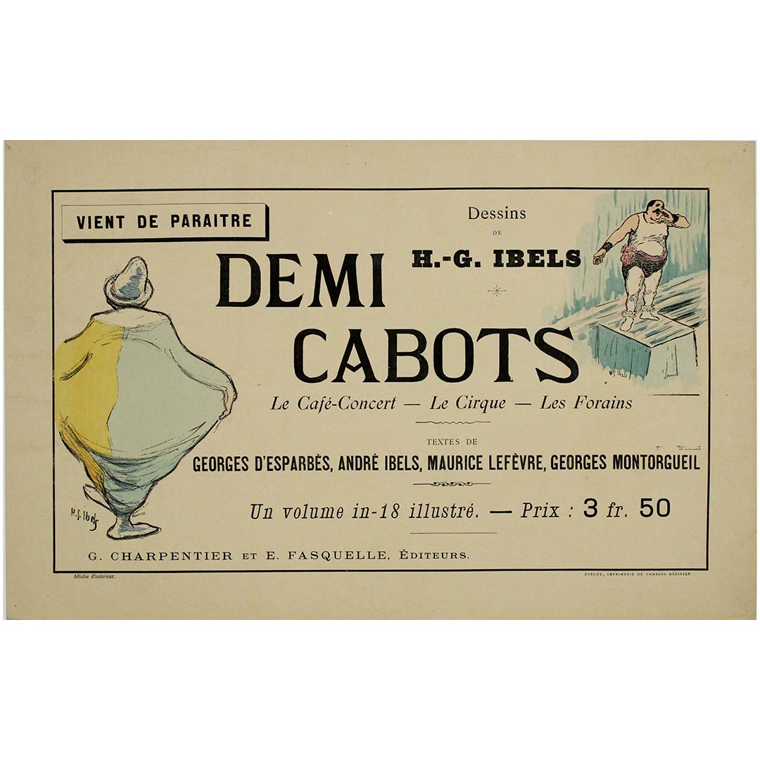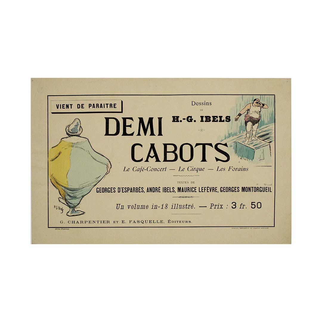 L'affiche originale de 1896 de HG Ibels, intitulée « Demi Cabots le café-concert le cirque les forains », offre un aperçu saisissant du monde coloré des cafés-concerts et des cirques parisiens à la fin du XIXe siècle.