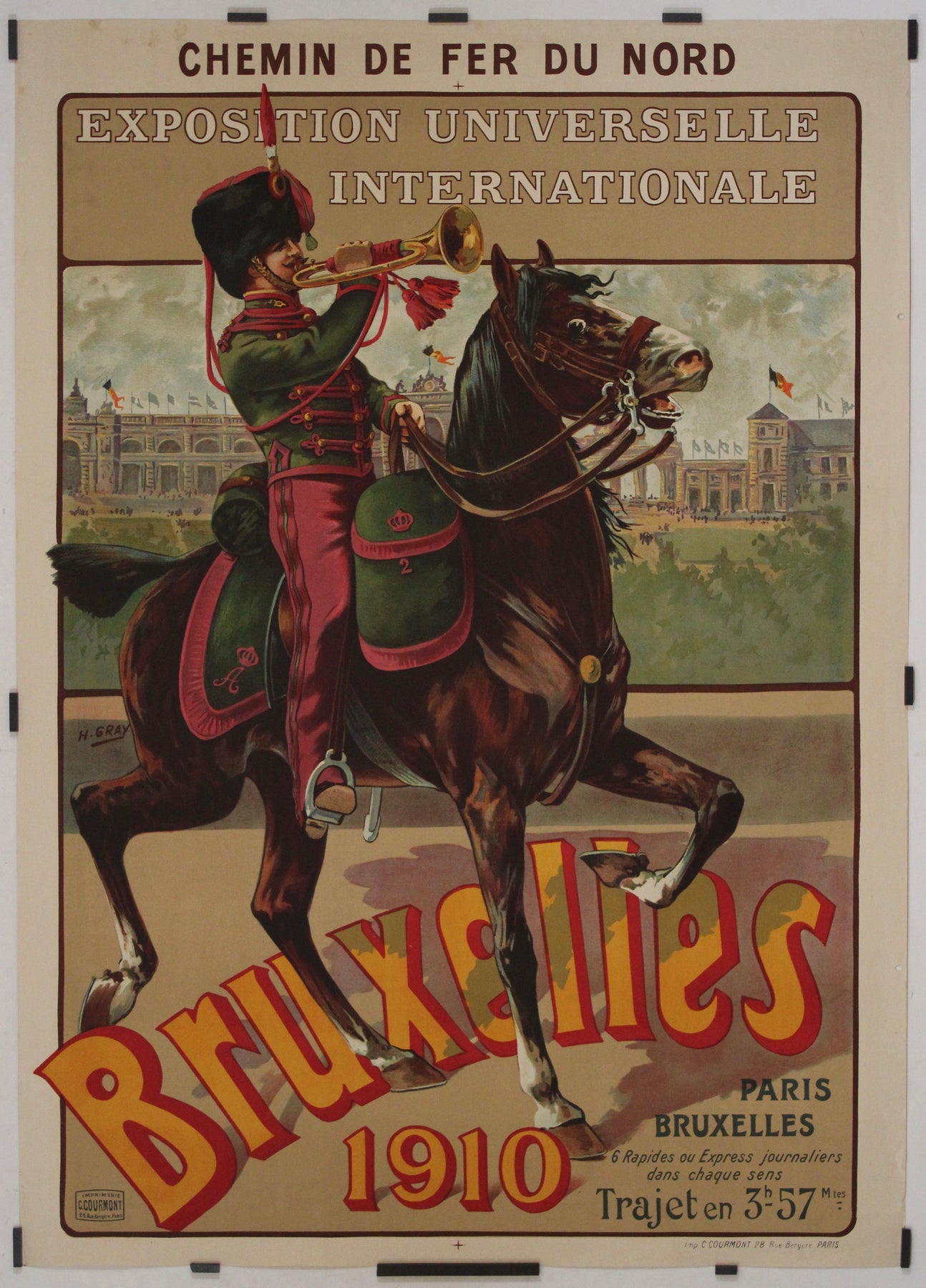 L'œuvre d'Henri Gray incarne les courants artistiques de l'époque, avec des lignes fluides, une typographie ornementale et une palette de couleurs harmonieuse, caractéristiques du mouvement Art nouveau. Sa représentation de l'exposition non seulement en fait la promotion, mais célèbre également le progrès technologique et les réalisations artistiques de l'époque. L'affiche constitue à la fois un témoignage historique et un rappel visuel d'une période où les expositions universelles étaient un lieu privilégié de coopération internationale et de diffusion des idées nouvelles.