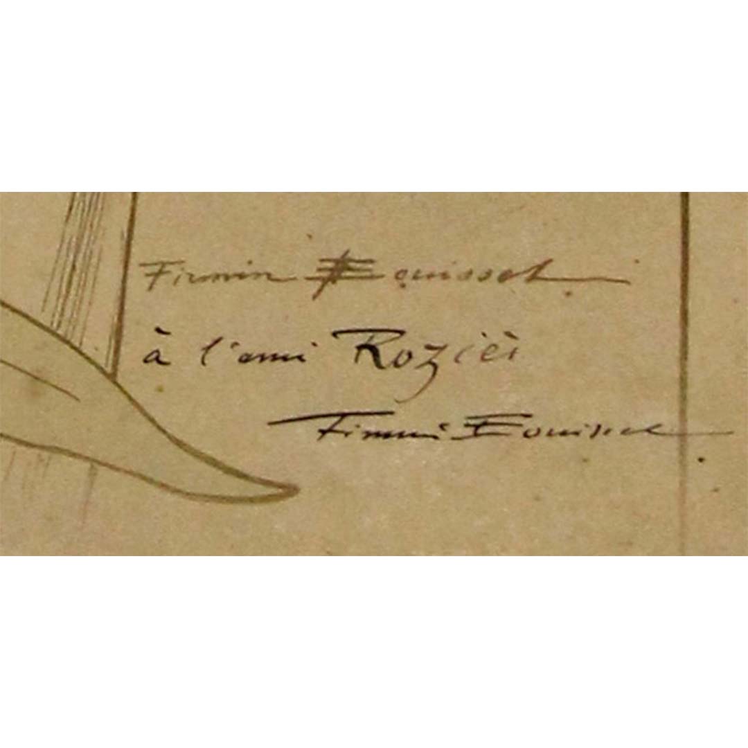 Exécuté avec une finesse exceptionnelle, ce dessin illustre à merveille l'élégance florale et la fluidité des lignes caractéristiques de l'Art nouveau. La végétation stylisée ne se contente pas de servir d'encadrement décoratif ; elle symbolise l'état contemplatif de la jeune fille, où nature et âme s'entremêlent.