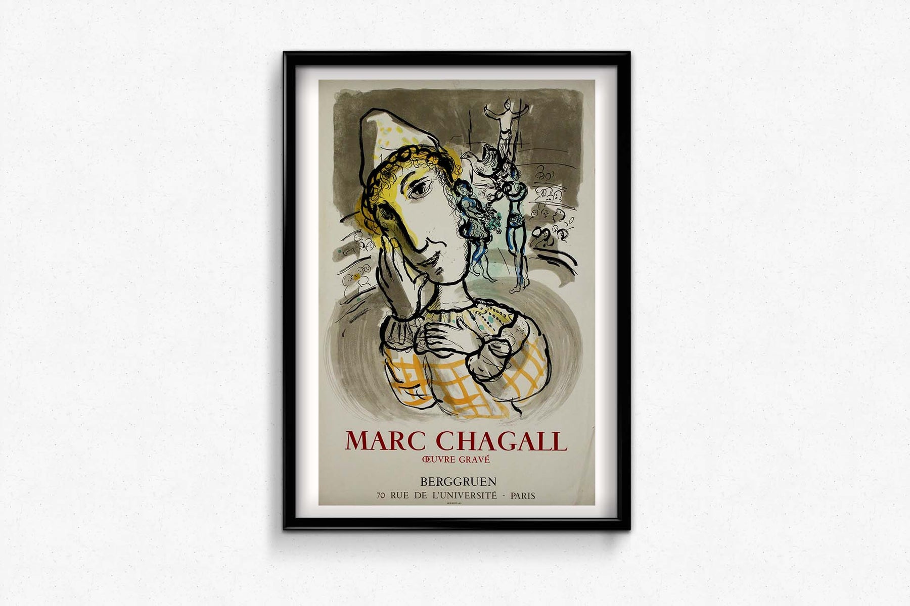 Marc Chagall, célèbre pour ses peintures surréalistes et oniriques, a également exploré avec prolificité les techniques de la gravure. Cette exposition, présentée à la prestigieuse Galerie Berggruen, offrait aux amateurs d'art une occasion rare de découvrir une œuvre moins connue mais tout aussi captivante de Chagall : ses estampes.