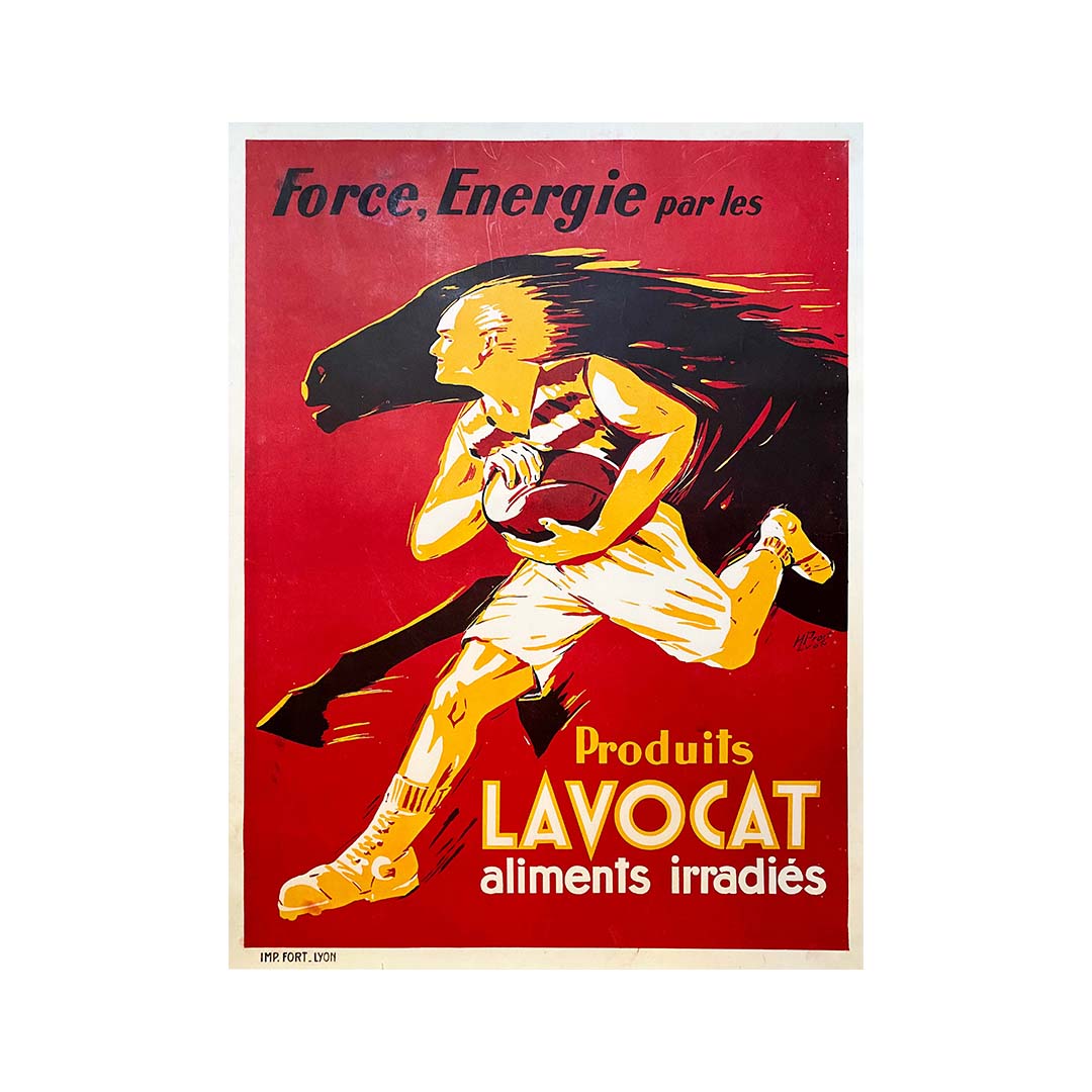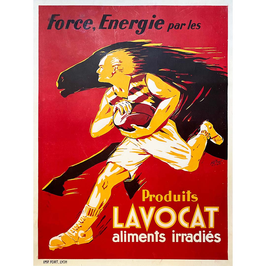 On y voit un joueur de rugby courant à la vitesse d'un étalon – sans doute grâce à Lavocat, un aliment « irradié ».