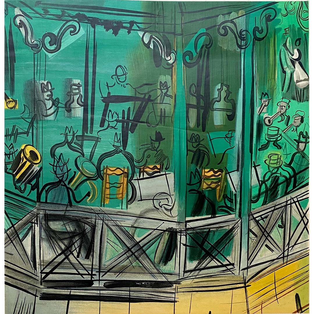 Sur cette affiche son œuvre "Le kiosque à musique" est mise en valeur.
