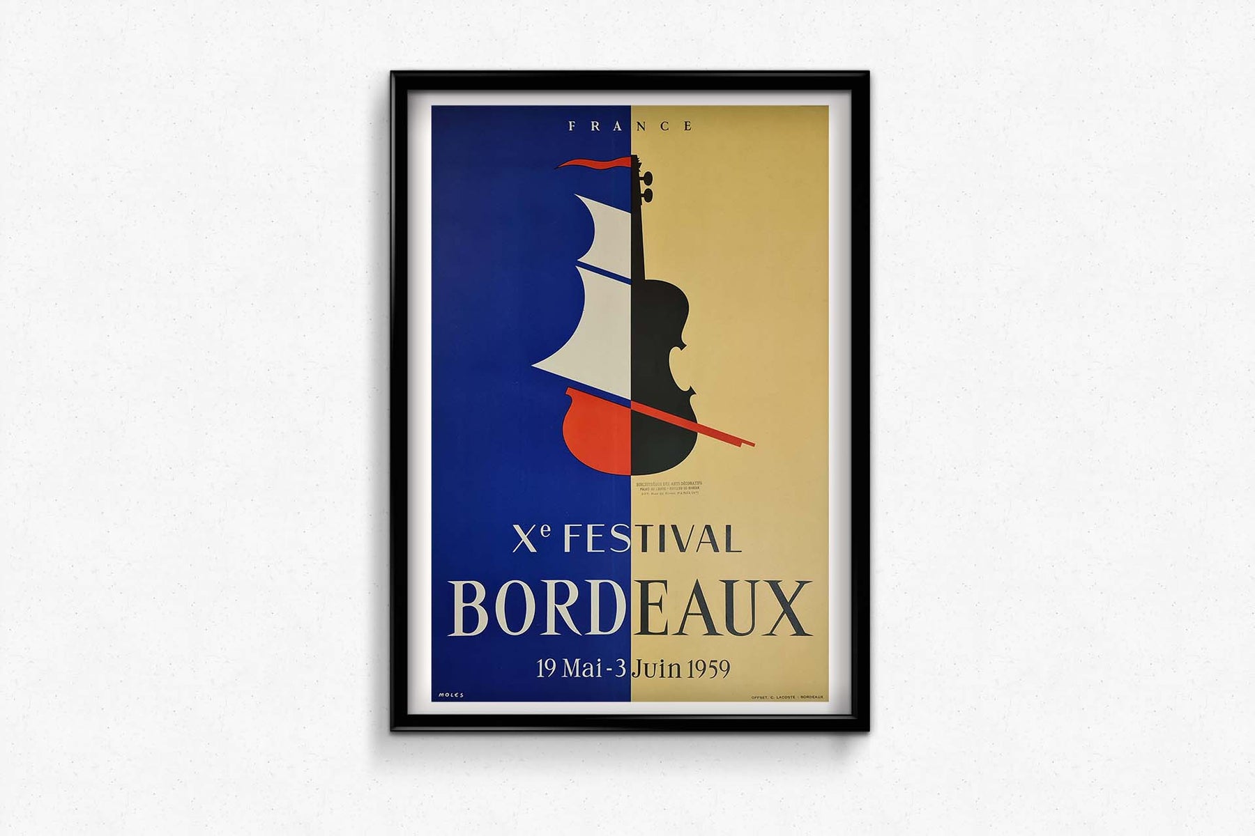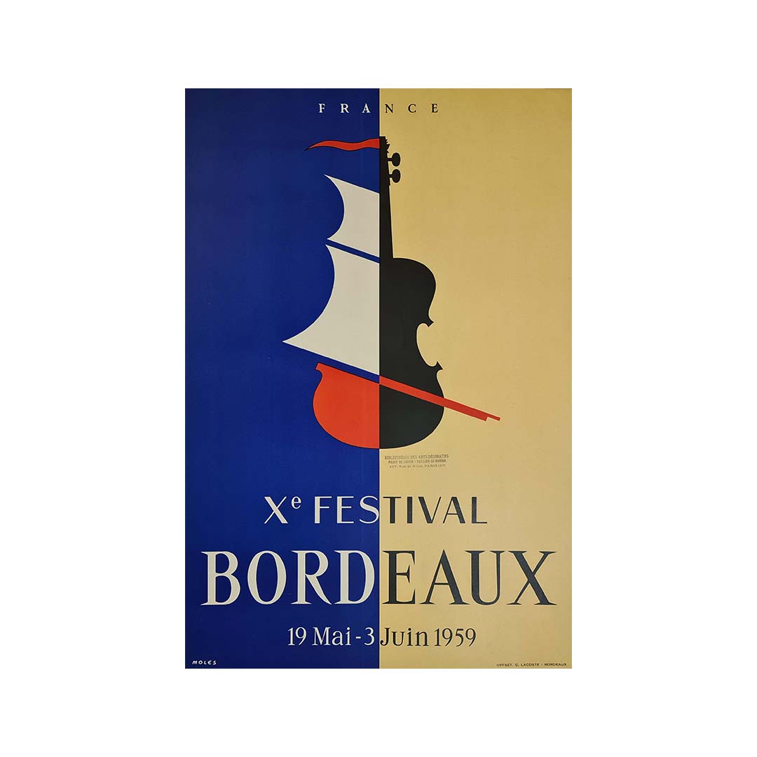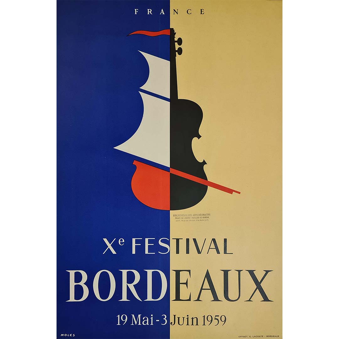 Affiche originale réalisée pour promouvoir la 10e édition du festival de musique de Bordeaux de 1959. Elle a été réalisée en 1958 et signée par l'artiste Moles.