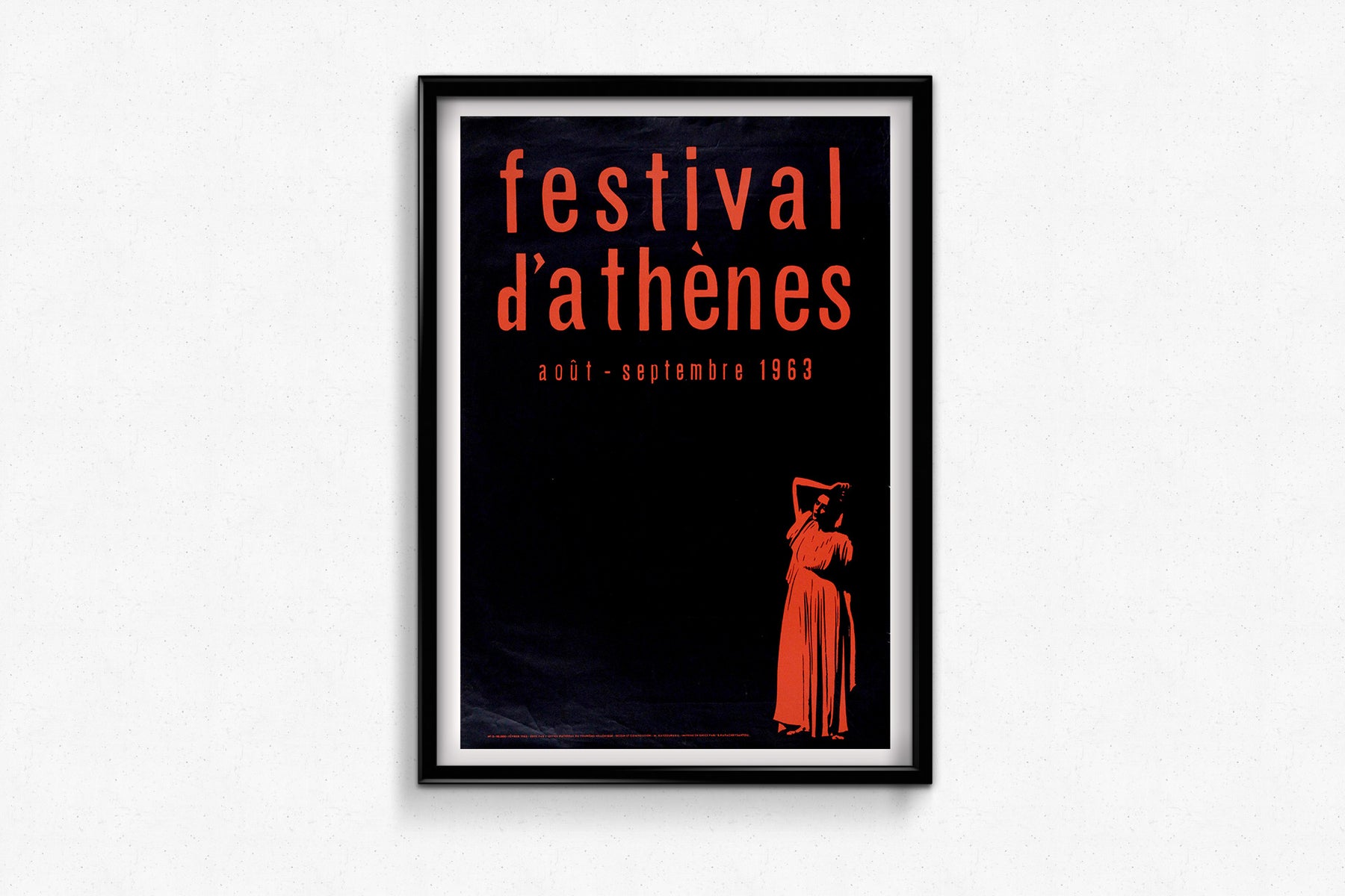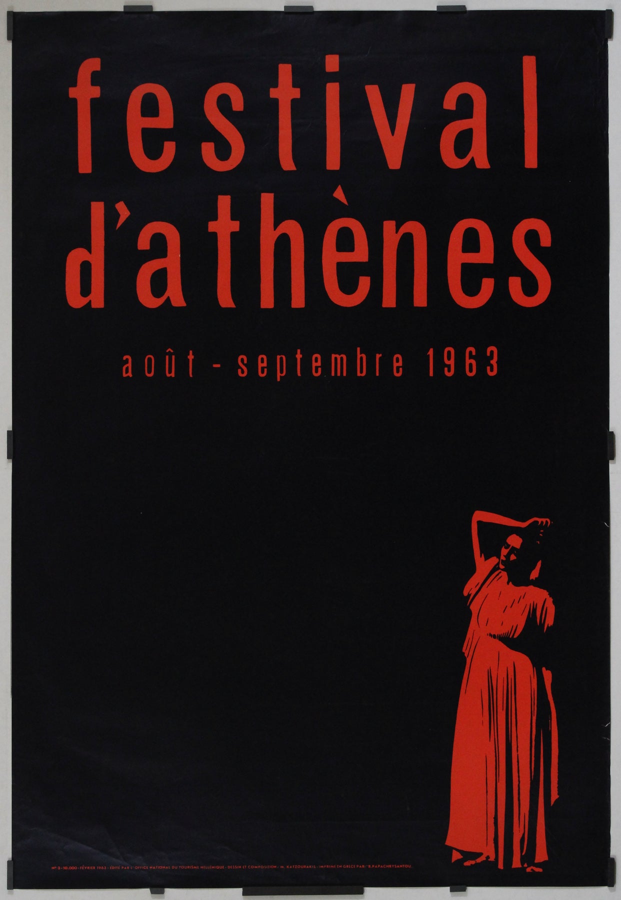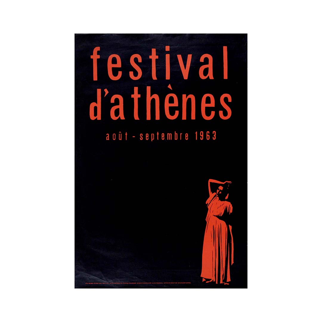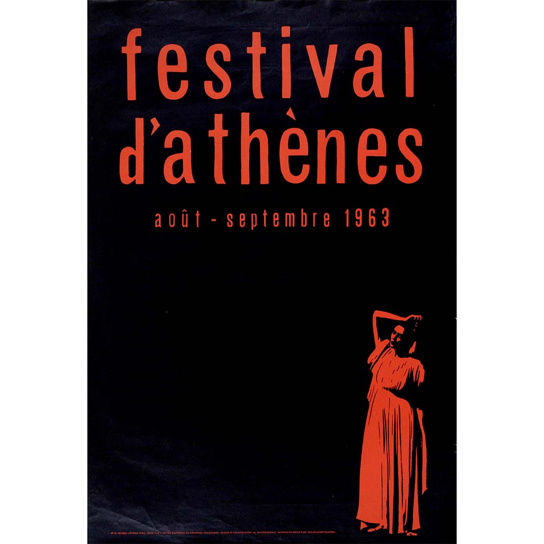 Cette rare affiche originale d'exposition de 1963 est une pièce très recherchée par les collectionneurs d'histoire du théâtre, de culture grecque et d'affiches de festivals vintage.