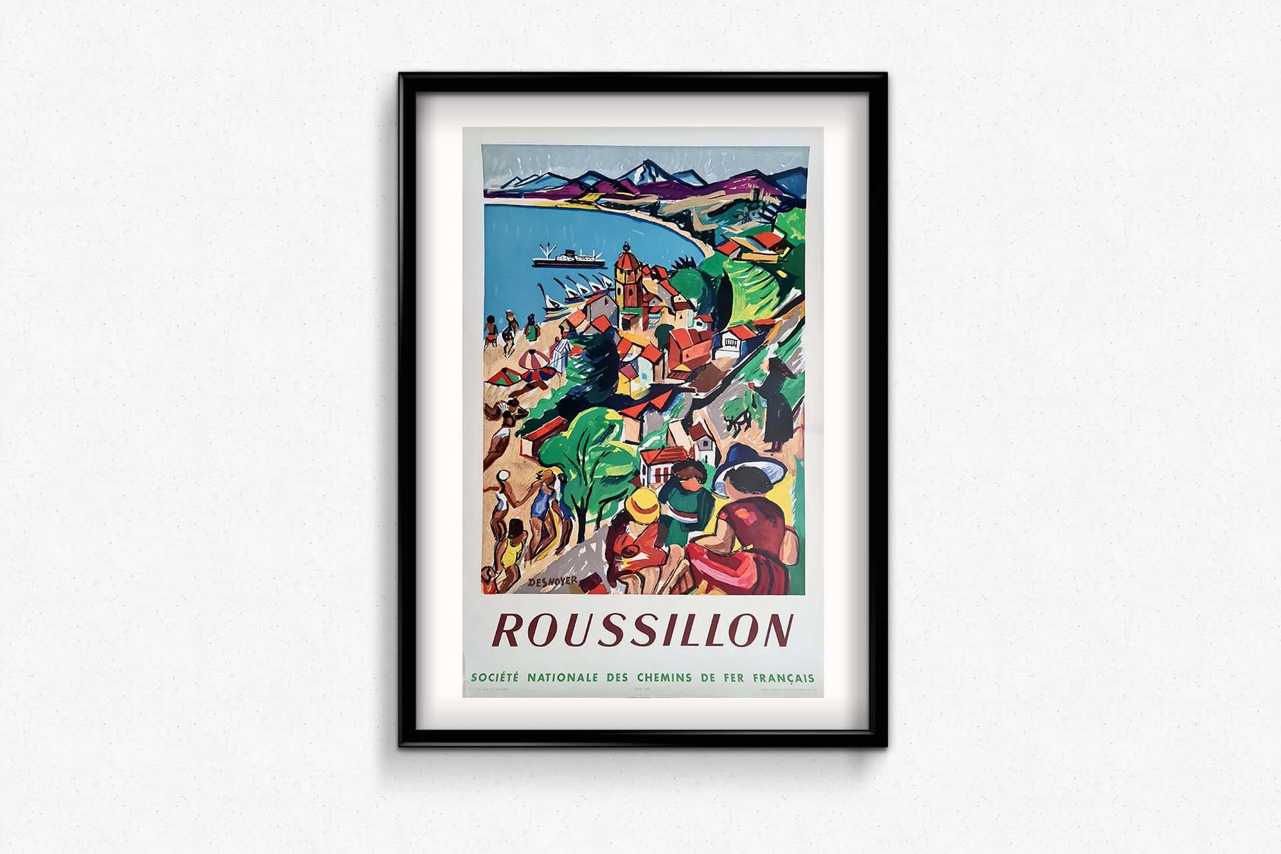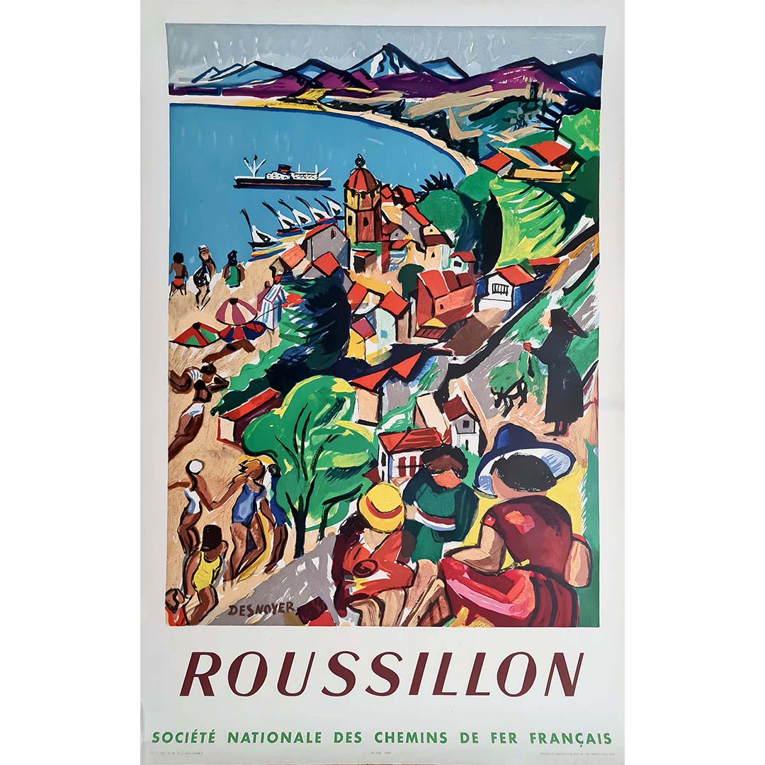 Cette affiche a été réalisée pour promouvoir le Roussillon, une région viticole du Languedoc-Roussillon, réputée pour la qualité de ses vignes.