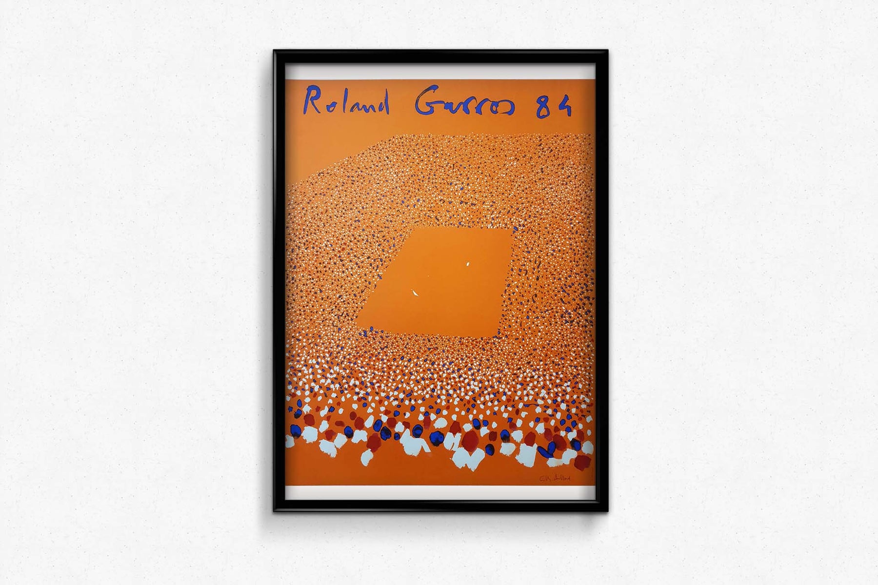 « Cette splendide affiche est la 5e à promouvoir le tournoi de tennis de France de 1984, aujourd'hui connu sous le nom de Roland Garros, l'un des quatre tournois du Grand Chelem. »