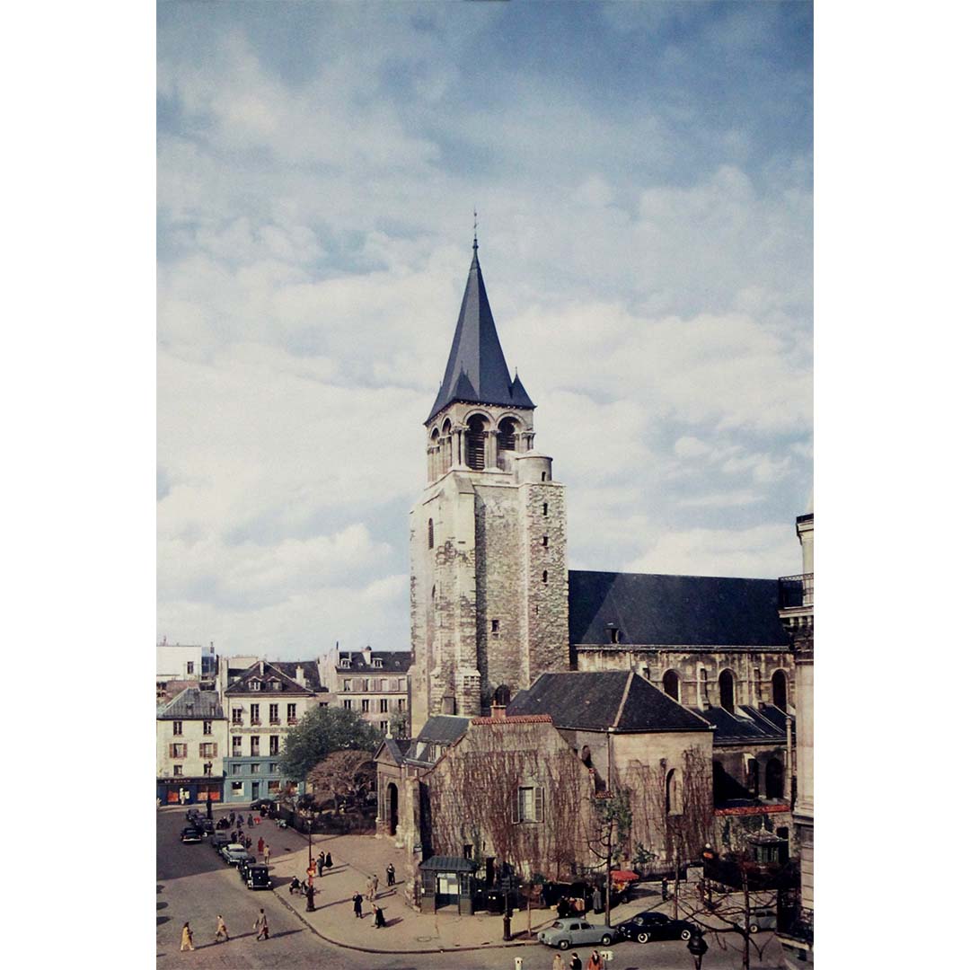 Saint-Germain-des-Prés, avec son abbaye romane, est depuis longtemps synonyme de raffinement parisien. Dès les années 1950, le quartier était devenu un foyer vibrant de philosophie existentialiste, de jazz, de littérature et d'art d'avant-garde. Fréquenté par des personnalités telles que Jean-Paul Sartre, Simone de Beauvoir, Juliette Gréco et Boris Vian, il symbolisait un renouveau créatif et un mode de vie cosmopolite qui fascinait autant les Parisiens que les visiteurs étrangers.