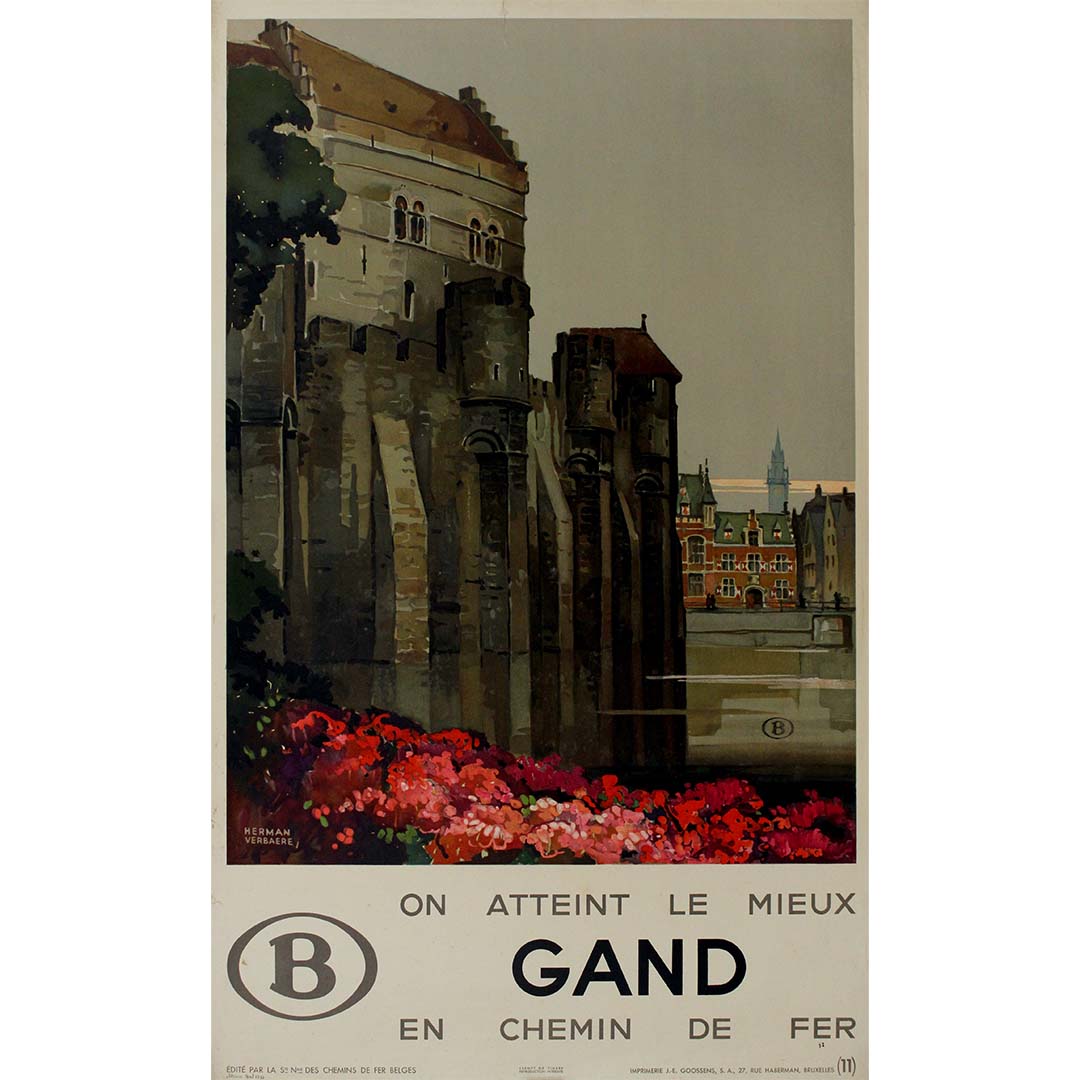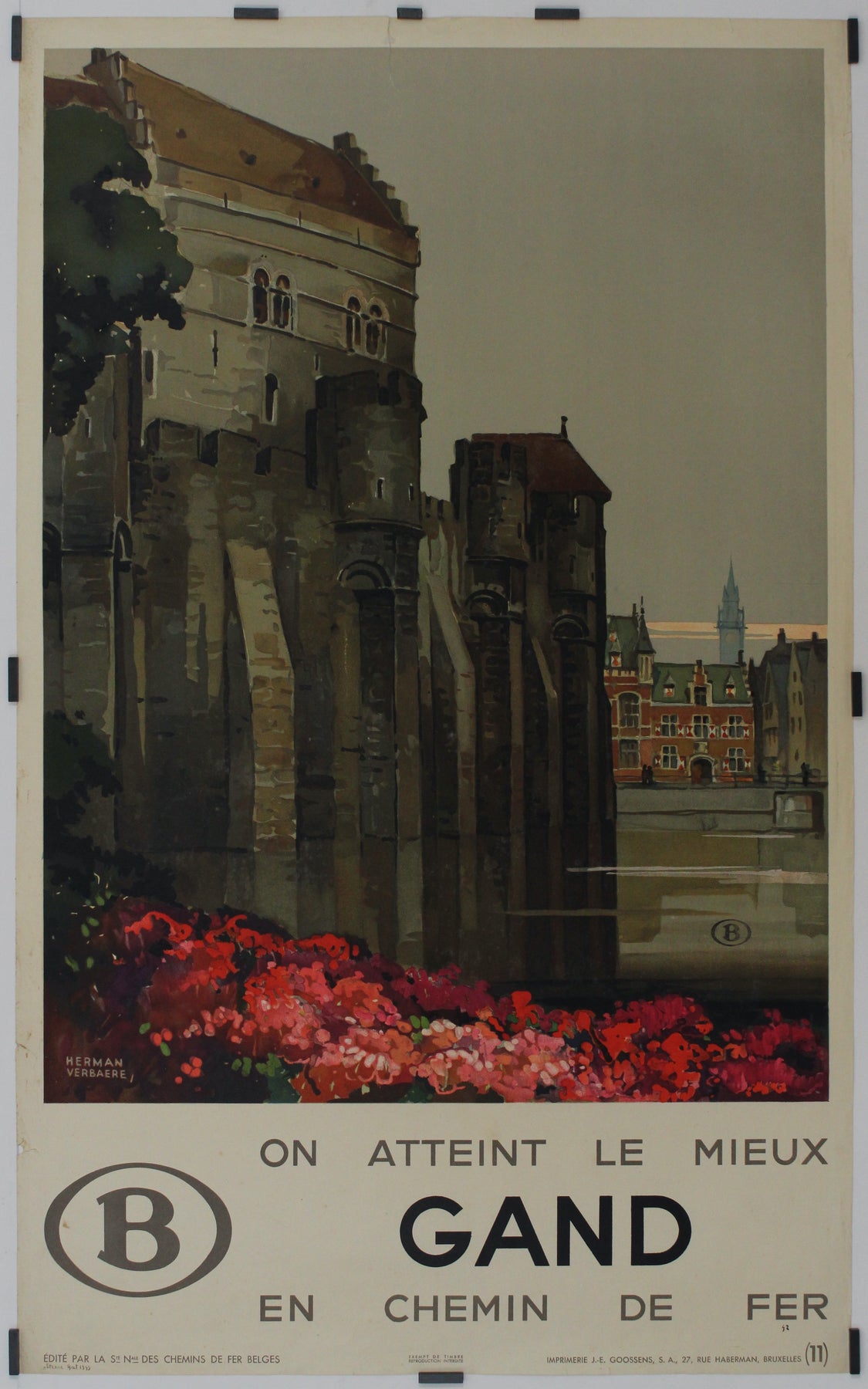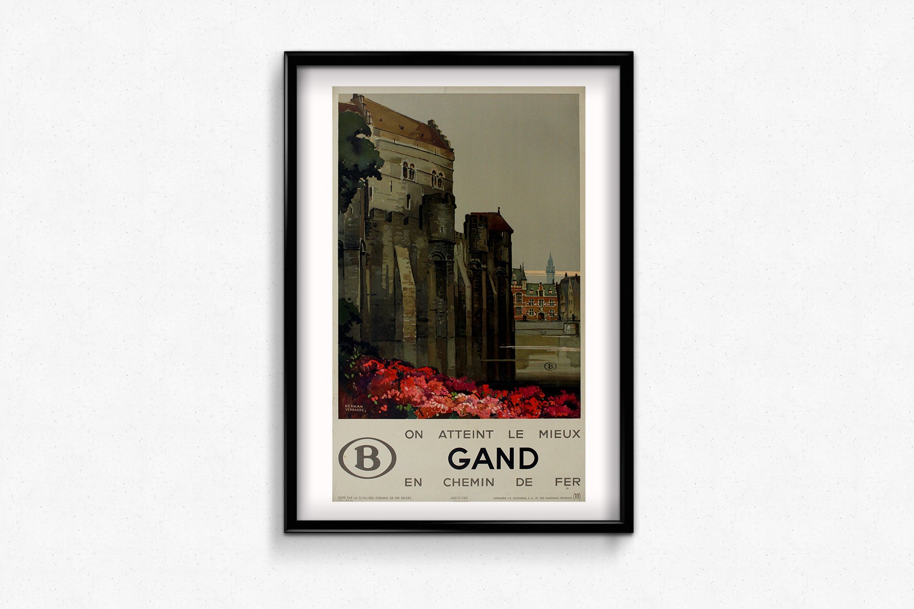 Aujourd'hui, cette affiche demeure une pièce de collection très recherchée, célébrant à la fois la maîtrise artistique d'Herman Verbaere et la beauté intemporelle de Gand, l'une des destinations les plus captivantes de Belgique.