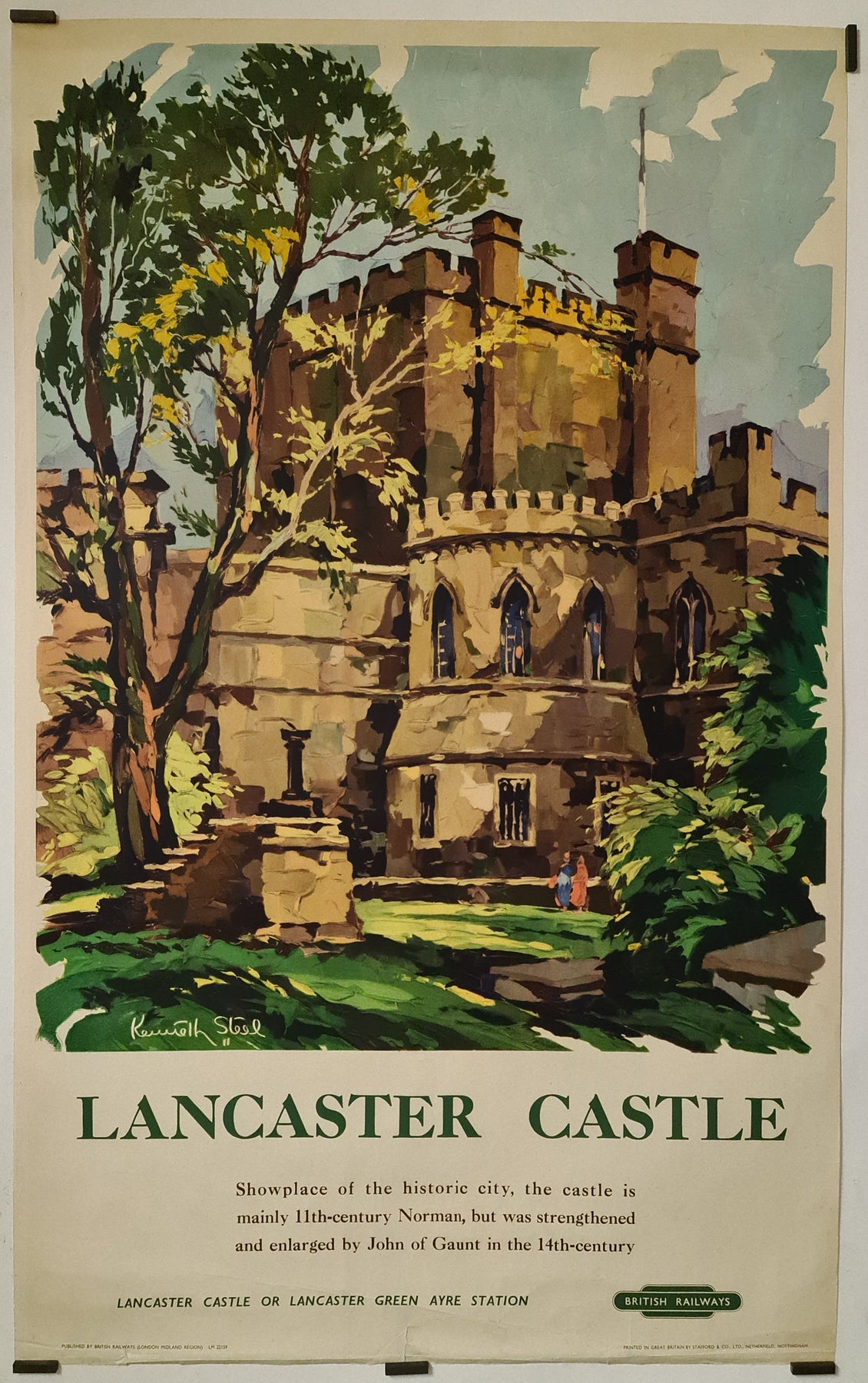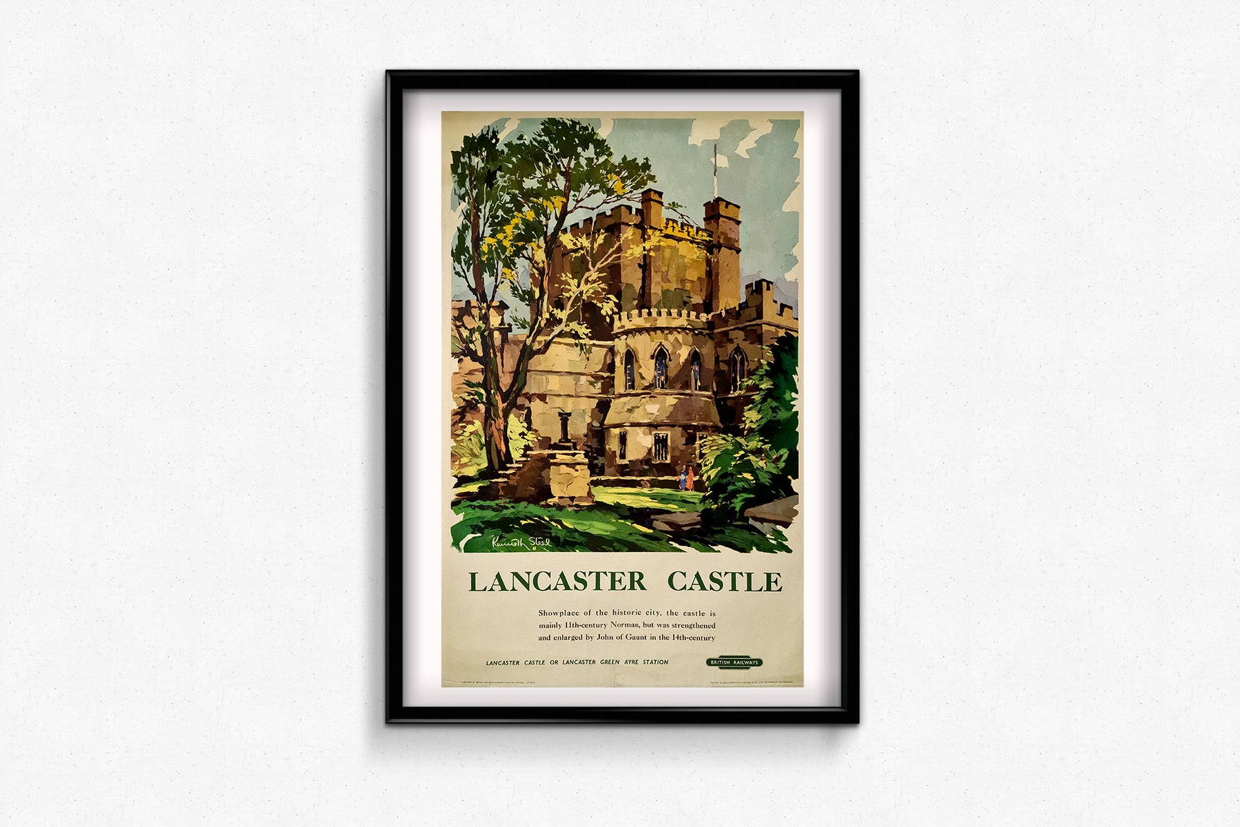 L'affiche originale de Kenneth Steel, datant d'environ 1950 et faisant la promotion du château de Lancaster pour le compte des British Railways , constitue un remarquable exemple de publicité touristique du milieu du XXe siècle. Elle invite les spectateurs à découvrir l'un des sites historiques et architecturaux les plus importants d'Angleterre, en soulignant l'accessibilité et la praticité du réseau ferroviaire britannique.