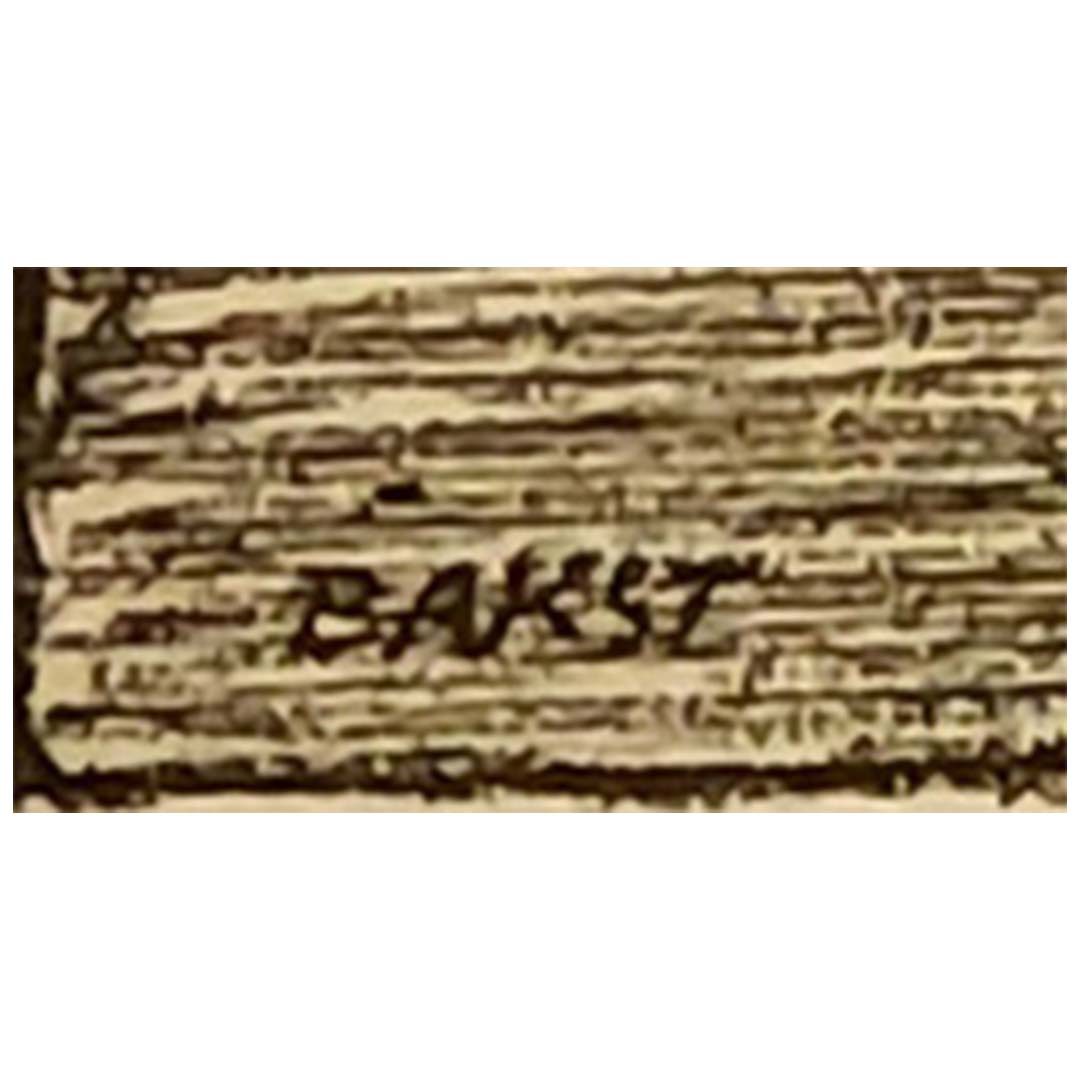 Cette illustration est caractéristique de la fusion unique, chez Bakst, entre beaux-arts et théâtralité. Son expérience de costumier et de scénographe pour les Ballets russes transparaît dans son approche très stylisée, empreinte d'un sens aigu du mouvement et du drame qui dépasse le cadre des illustrations de propagande classiques. Célèbre pour ses visuels vibrants et dramatiques, Bakst applique ici des techniques similaires, traduisant sa scénographie visionnaire en un commentaire visuel à forte connotation politique. Sa capacité à évoquer à la fois l'élégance et l'intensité fait de cette œuvre un exemple saisissant de l'art comme outil de communication en temps de guerre.
