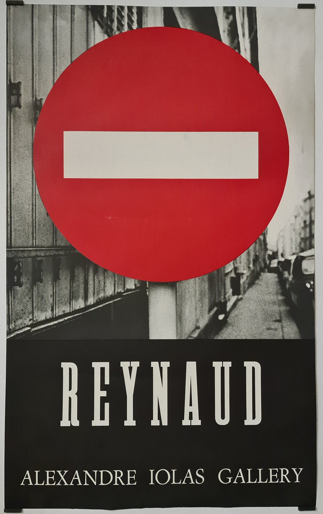 L'affiche « Sens Interdit » reflète vraisemblablement la démarche minimaliste et provocatrice de Raynaud. Son design, simple mais percutant, mettait peut-être en valeur les formes géométriques audacieuses et les couleurs éclatantes qui caractérisent l'artiste. Objet de collection, cette affiche revêt une importance particulière, non seulement de par son lien avec la célèbre galerie Alexandre Iolas, mais aussi comme témoignage de l'œuvre marquante de Raynaud à une période charnière de sa carrière.