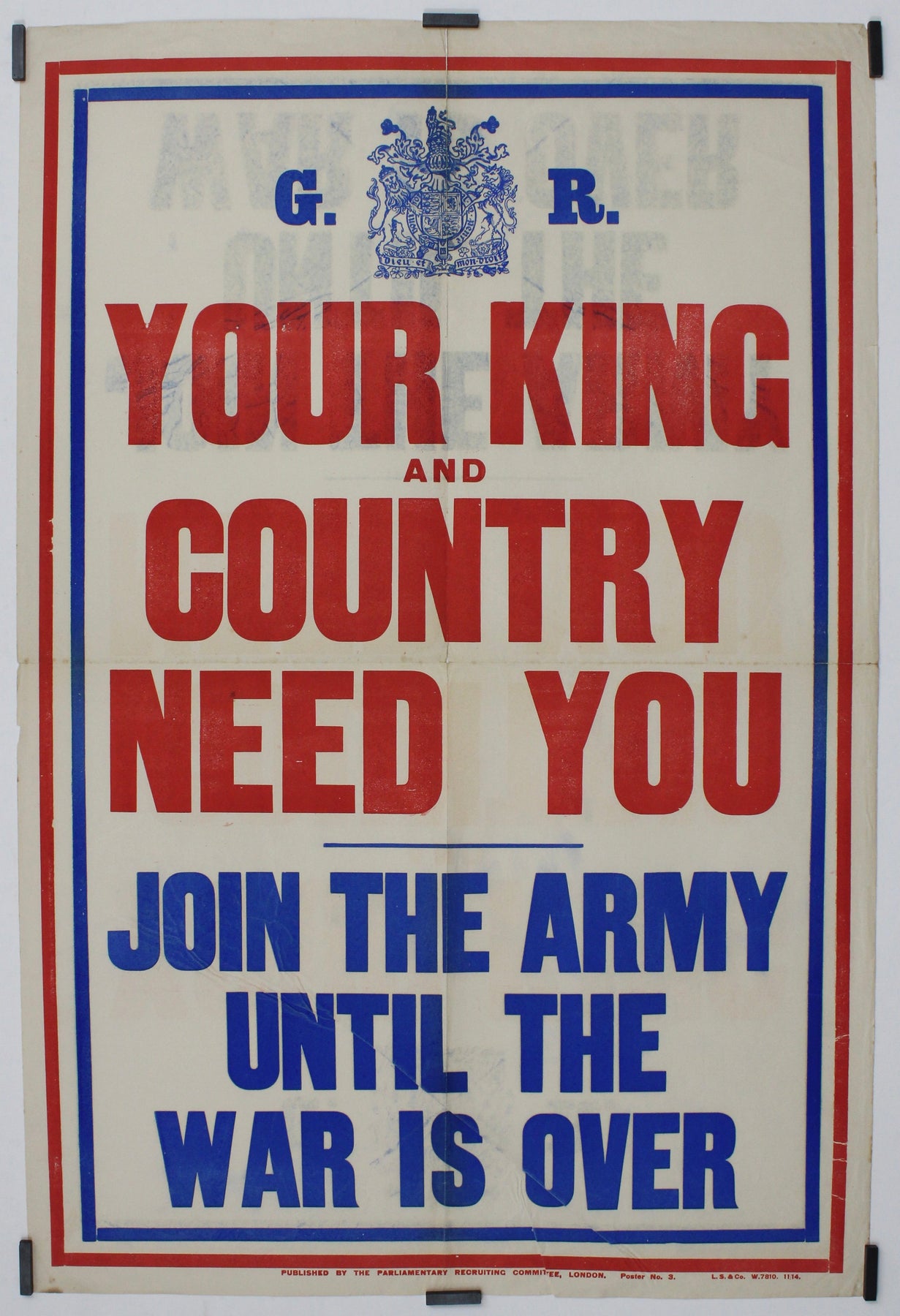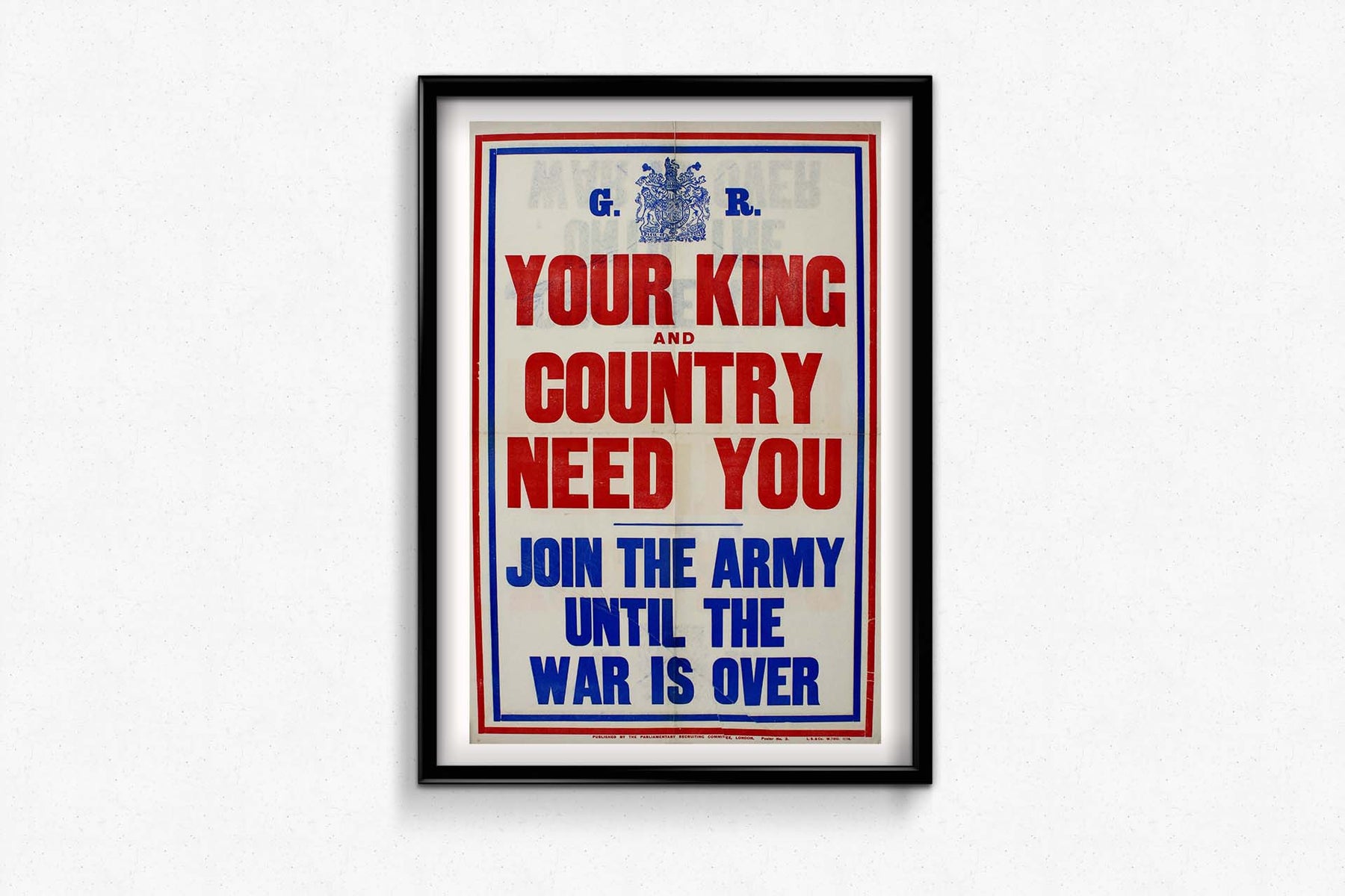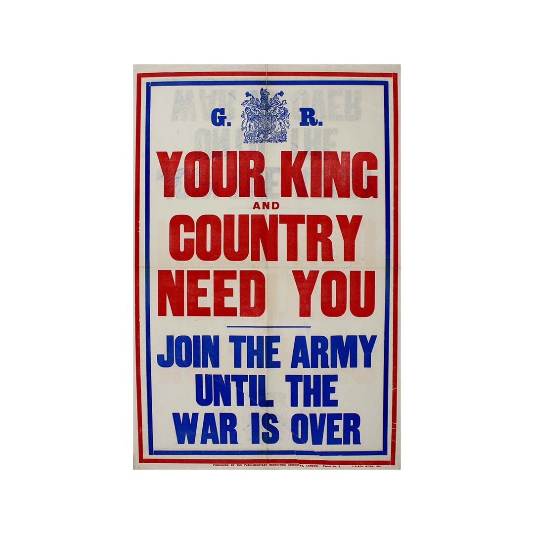 Ce message était un appel à l'engagement pour les hommes valides, les incitant à s'enrôler dans l'armée. Il faisait appel au patriotisme, à la loyauté envers la monarchie et au sens des responsabilités collectives pour défendre la nation face aux menaces perçues. L'emploi du mot « besoin » souligne la gravité de la situation et suggère que l'action individuelle est indispensable au bien commun.