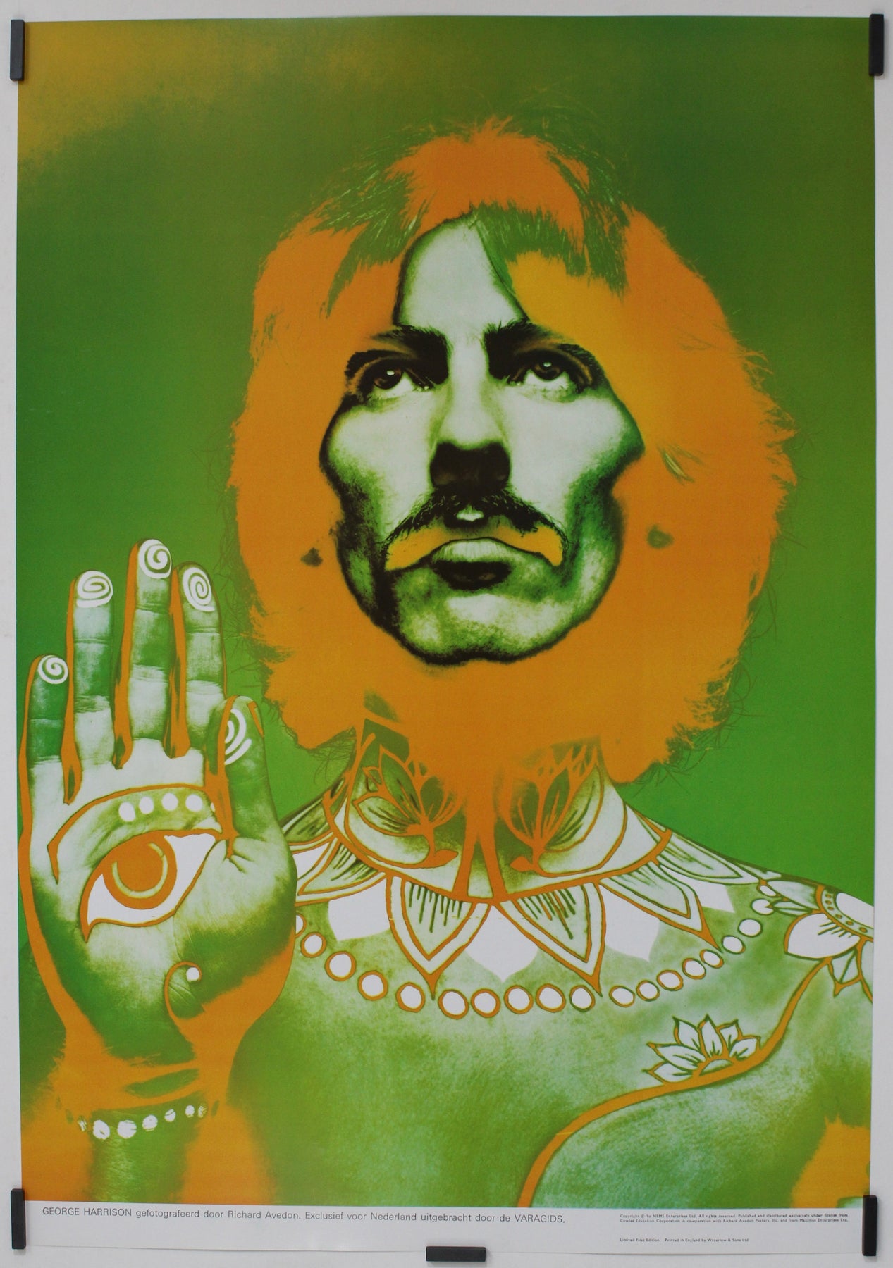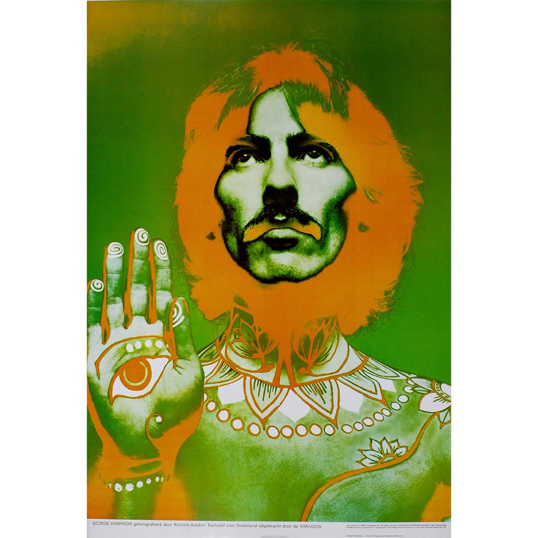 Richard Avedon, célèbre pour ses portraits saisissants et ses photographies de mode novatrices, a apporté sa vision artistique unique à cette affiche. Doté d'un talent exceptionnel pour saisir l'essence de ses sujets, Avedon a fait de George Harrison un symbole intemporel de créativité, de charisme et de génie musical.
