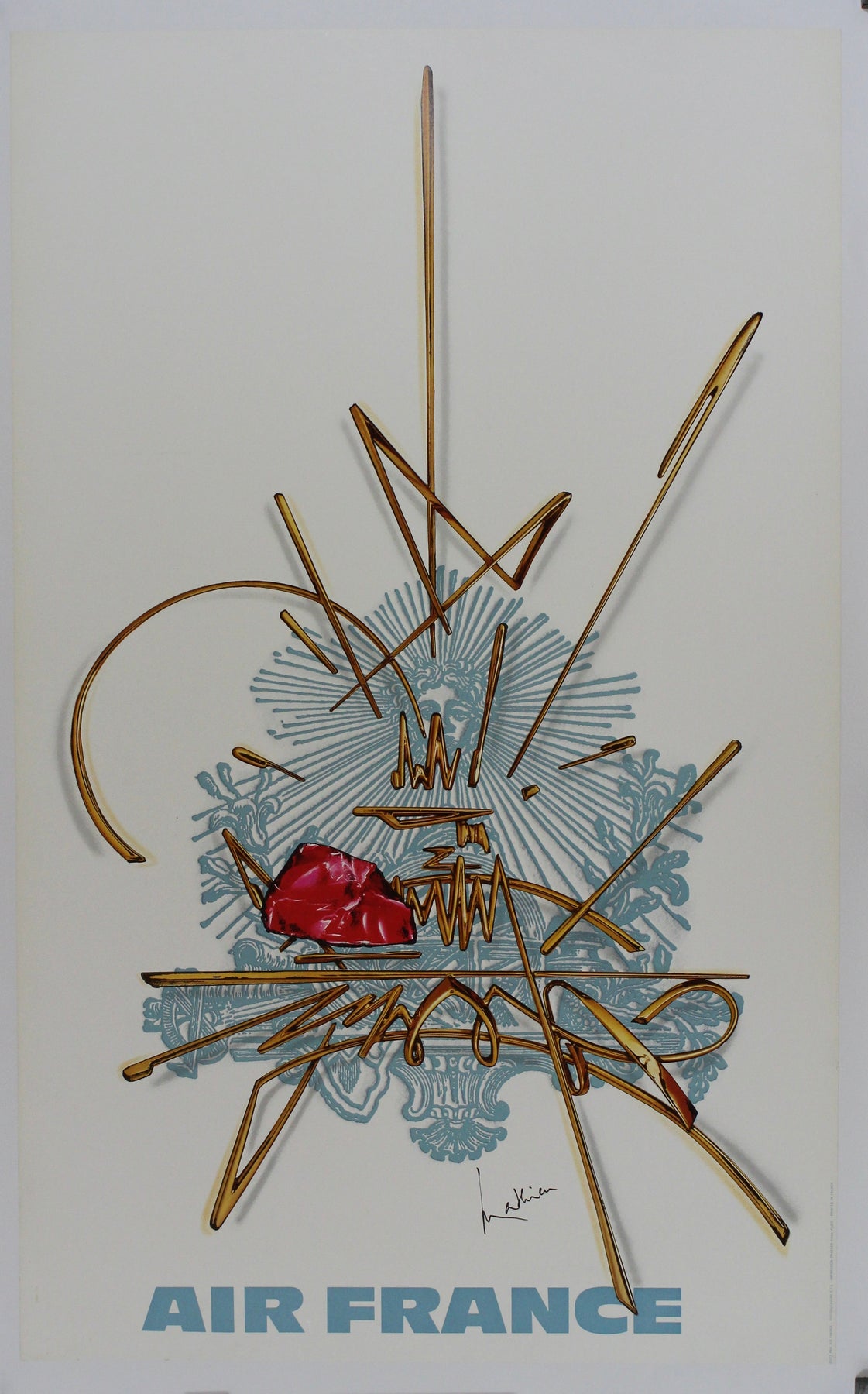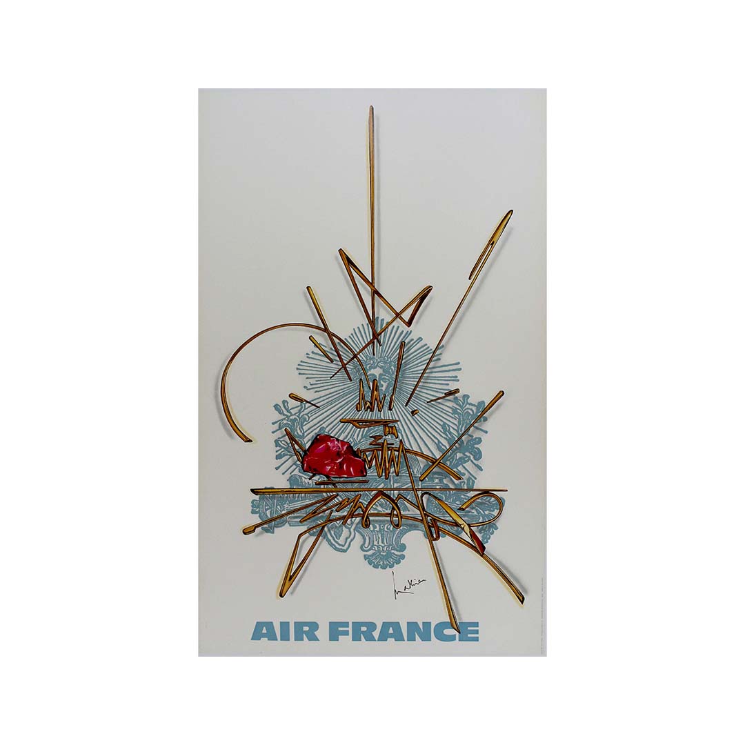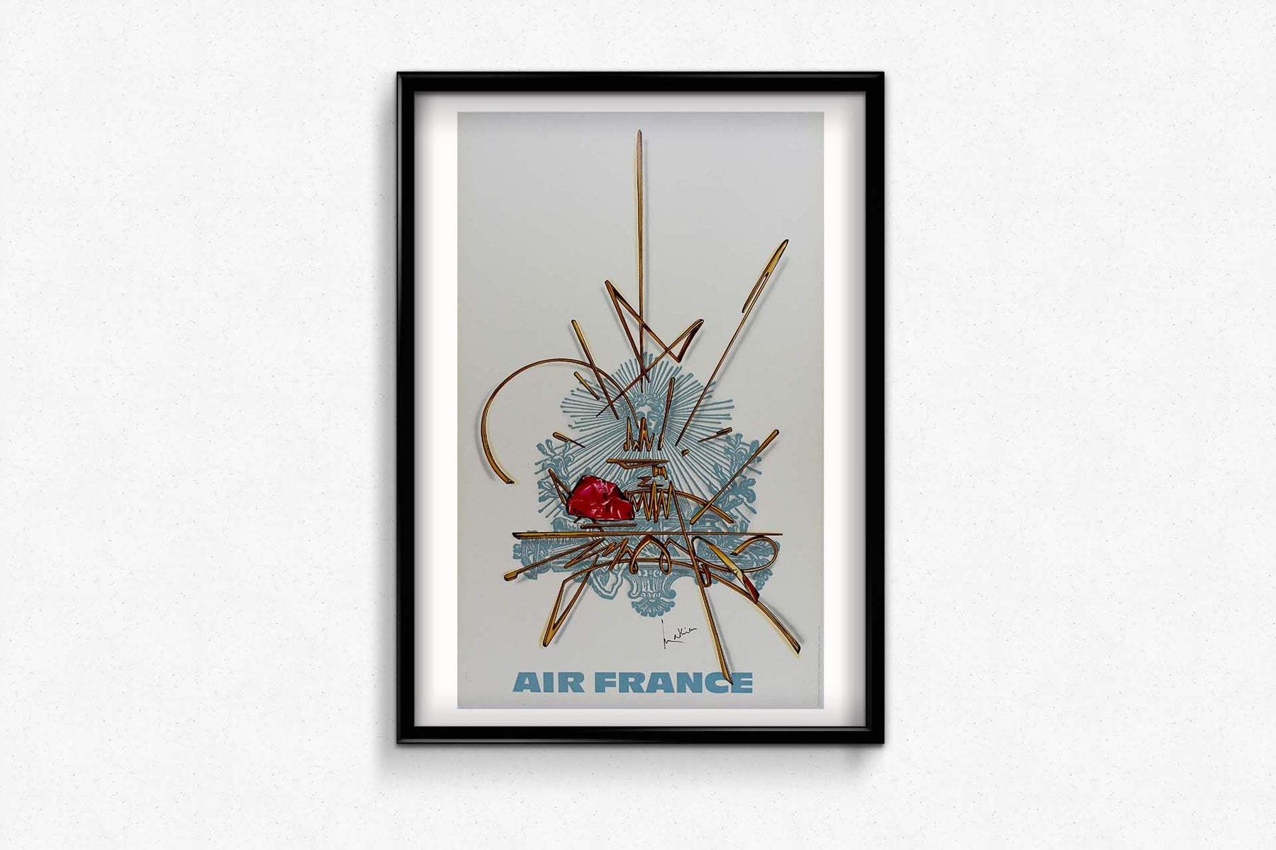 L'affiche Air France Paris de 1967, conçue par Mathieu, est un chef-d'œuvre visuel qui nous transporte avec aisance dans une époque d'élégance et de raffinement intemporels. Cette affiche iconique capture le charme du voyage aérien à la fin des années 1960 et fait partie d'une remarquable série initiée par Pierre Sautet, directeur commercial adjoint d'Air France. Mathieu, qui avait commencé à travailler sur ces affiches un an auparavant, acheva cette série en 1967. La collaboration entre l'art et la publicité a abouti à la présentation de ces affiches le 26 octobre 1967 au Musée d'Art Moderne de la Ville de Paris.