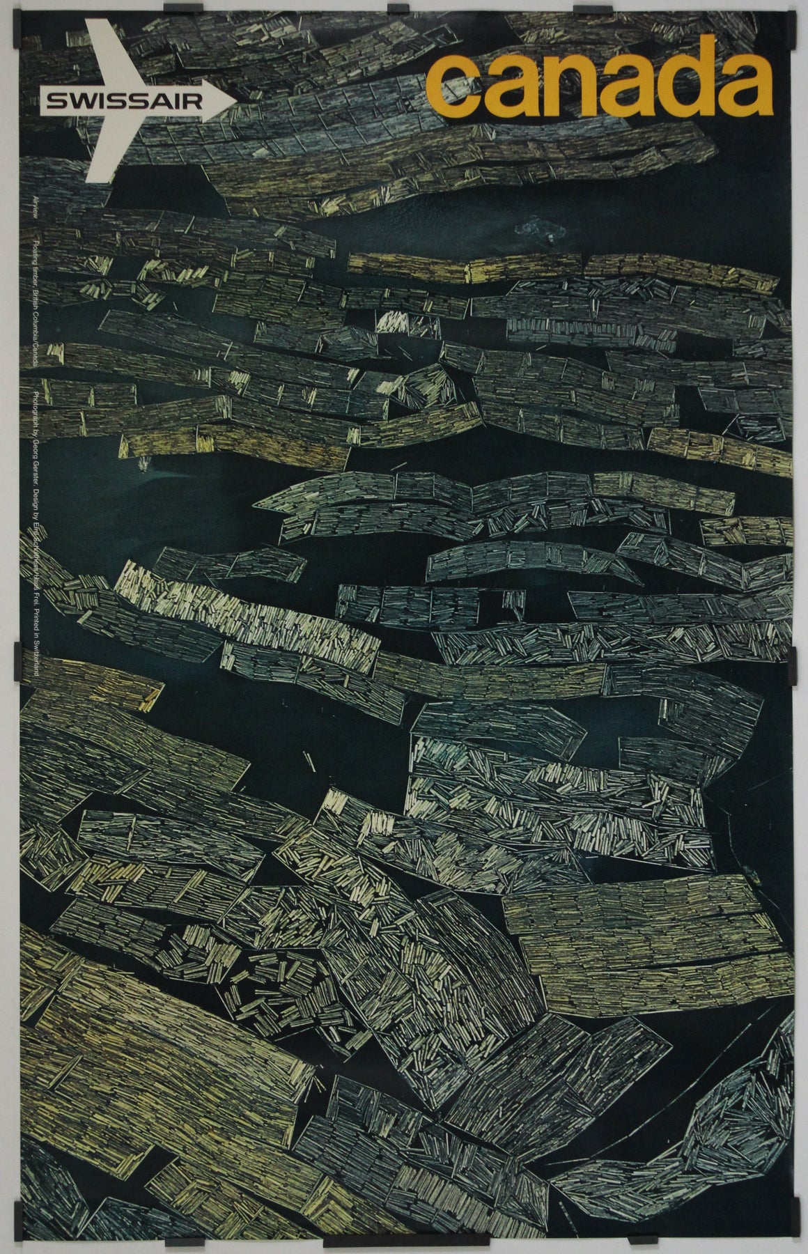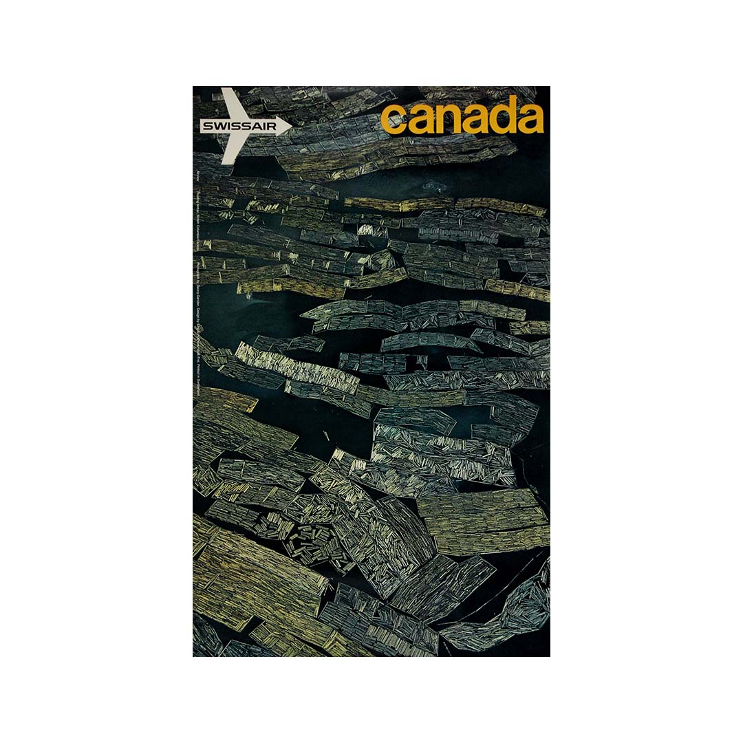 L'affiche touristique originale de Swissair, datant de 1971 et intitulée « Airview - British Columbia », a été créée par le célèbre photographe aérien suisse Georg Gerster, avec la contribution graphique d'Emil Schulthess et Hans Frey. Cette affiche met en valeur la beauté époustouflante de la Colombie-Britannique, au Canada, depuis une perspective aérienne unique, incitant les voyageurs à explorer cette magnifique région du monde.