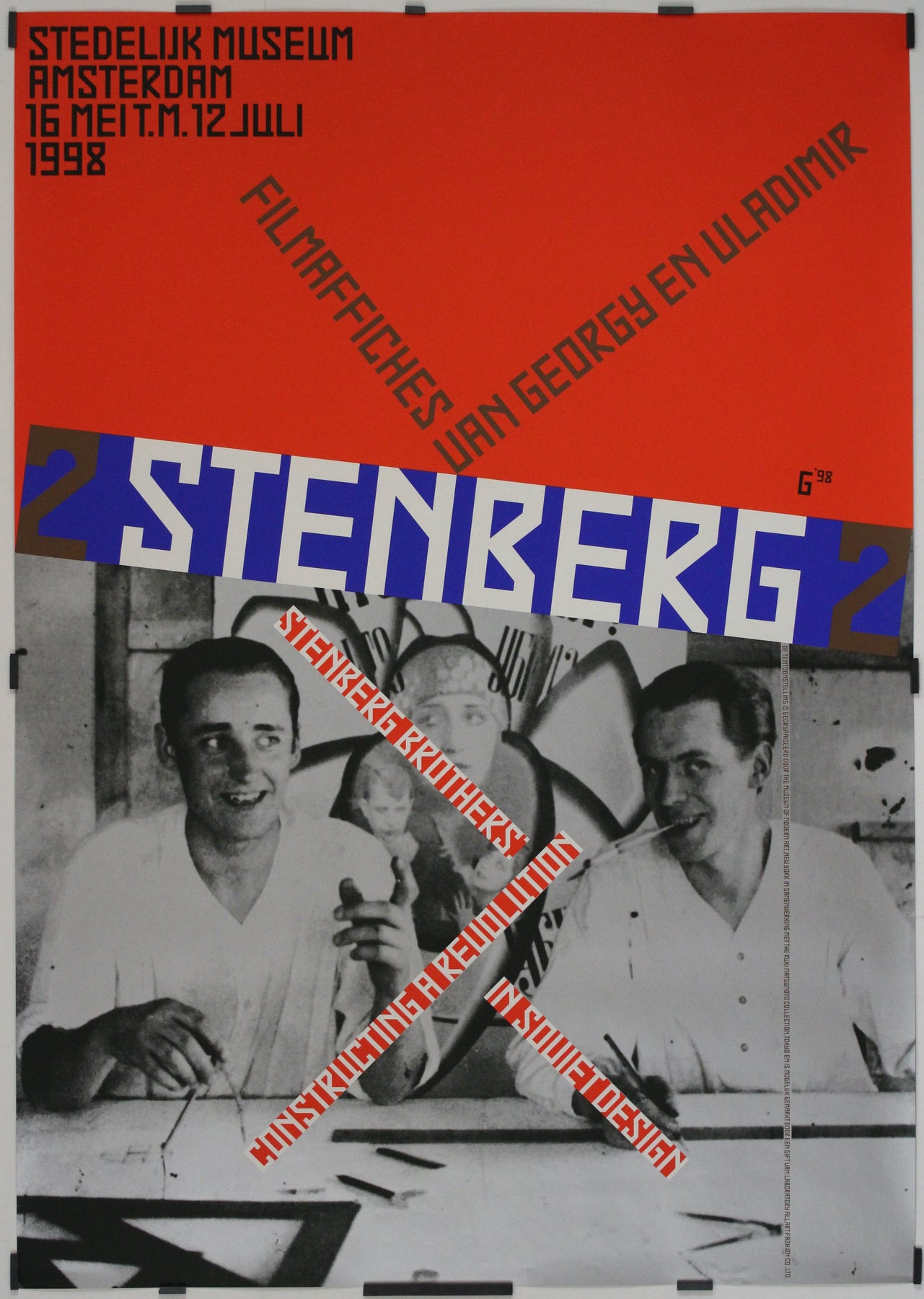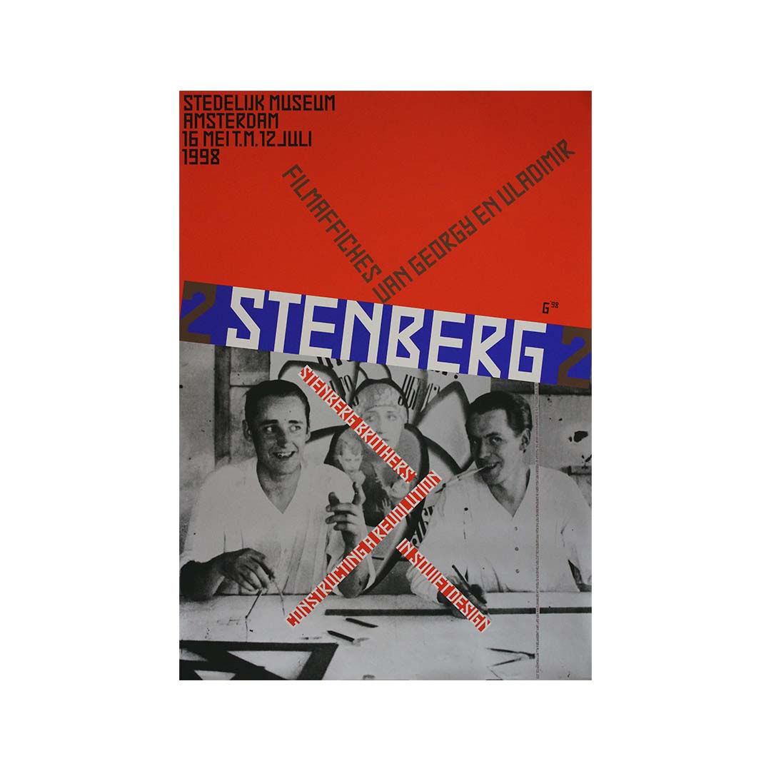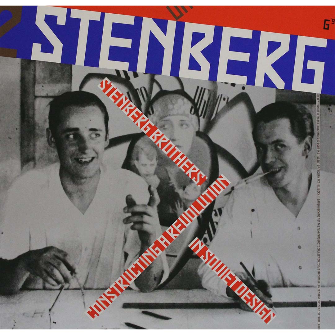 Gielijn Escher, graphiste néerlandais réputé pour la pureté de ses lignes et son utilisation percutante de la couleur, rend un vibrant hommage aux frères Stenberg à travers cette affiche. Son œuvre, au-delà de la promotion de l'exposition, reflète les principes de design révolutionnaires incarnés par ces derniers.