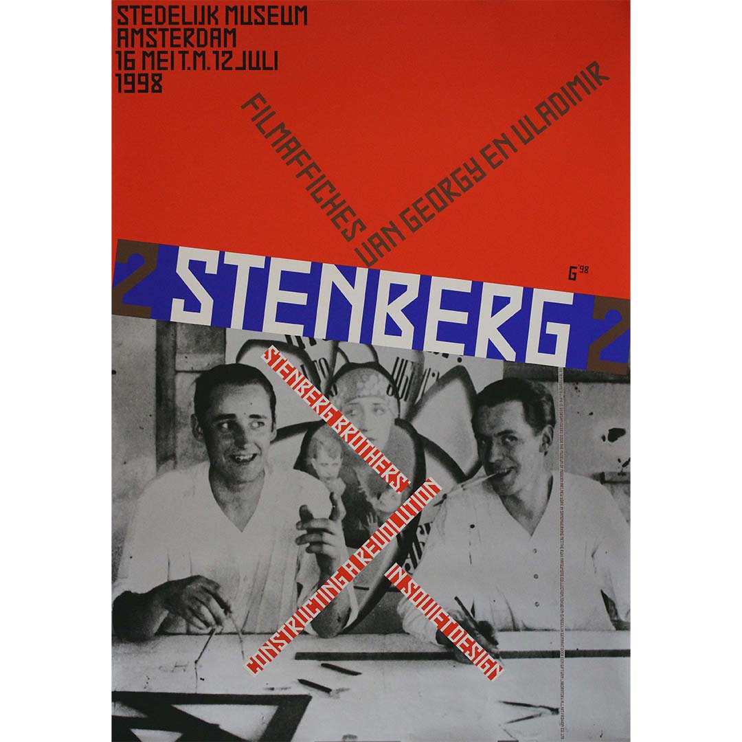 Prix régulier €500,00L'affiche de l'exposition des frères Stenberg, conçue par Gielijn Escher, a été exposée au Stedelijk Museum d'Amsterdam du 16 mai au 12 juillet 1998. Cette œuvre graphique remarquable capture l'esprit d'avant-garde des frères Stenberg, célèbres pour leurs contributions novatrices à la conception d'affiches de films soviétiques au début du XXe siècle.
