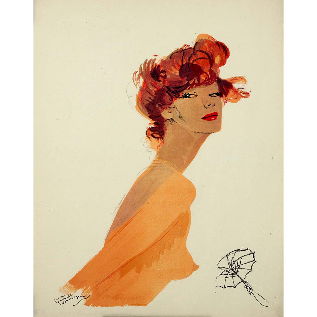 Jean-Gabriel Domergue est célèbre pour ses portraits de femmes, souvent idéalisées comme élégantes et raffinées, incarnant le style et la beauté de la bourgeoisie française. Ses œuvres, empreintes de délicatesse et de grâce, capturent le raffinement et le charme de la vie parisienne, notamment à travers sa célèbre série « La Parisienne » . Cette lithographie, l'une des pièces maîtresses du portfolio, saisit l'essence même de la féminité parisienne, mettant en lumière l'assurance, l'élégance et la modernité du modèle.