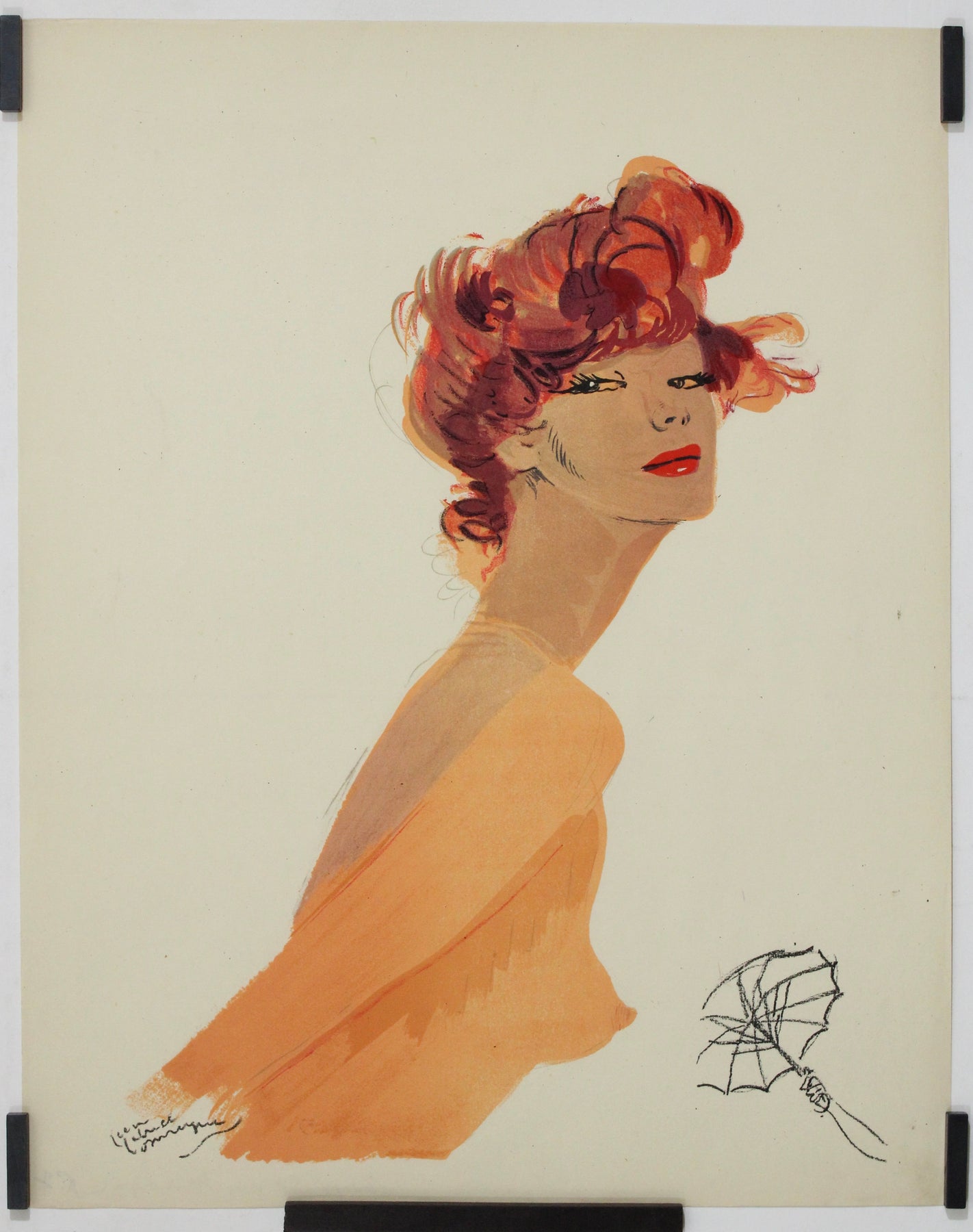 L'œuvre de Domergue est très appréciée pour son alliance d'influences Art déco et d'une exploration moderniste de la figure humaine. Ses portraits ne se limitaient pas à la ressemblance physique ; ils visaient également à saisir l'essence des sensibilités esthétiques de l'époque, où l'élégance, la beauté et la féminité étaient primordiales. Artiste de l'après-guerre, Domergue était profondément impliqué dans le monde de la mode, de la société et de la culture, et ses œuvres reflétaient souvent ces intérêts, créant une image idéalisée de la vie parisienne.