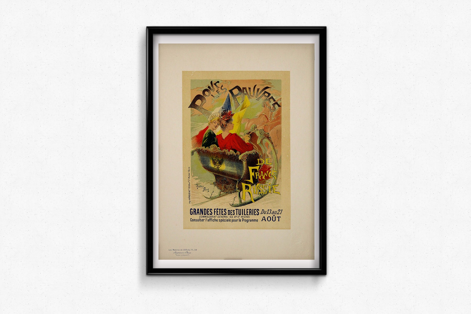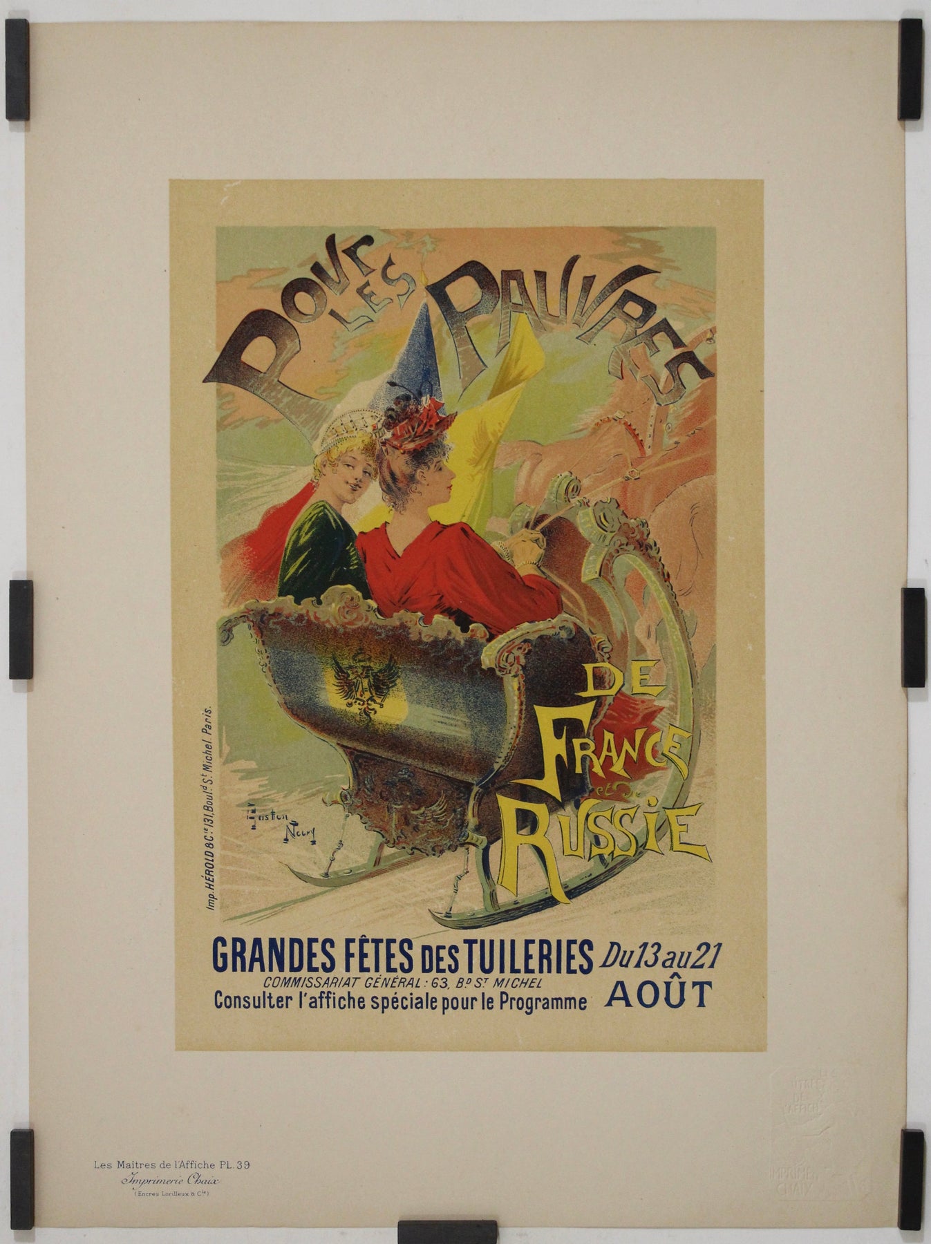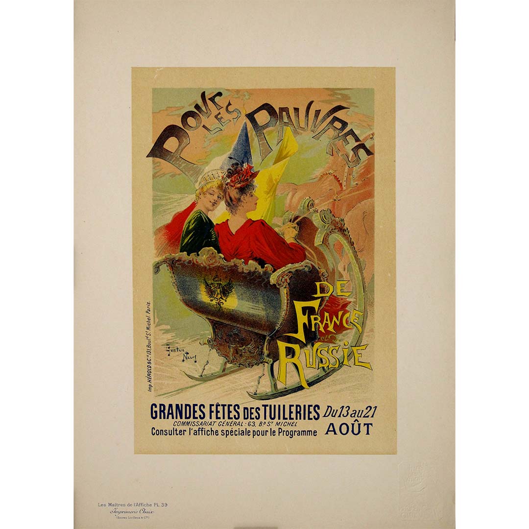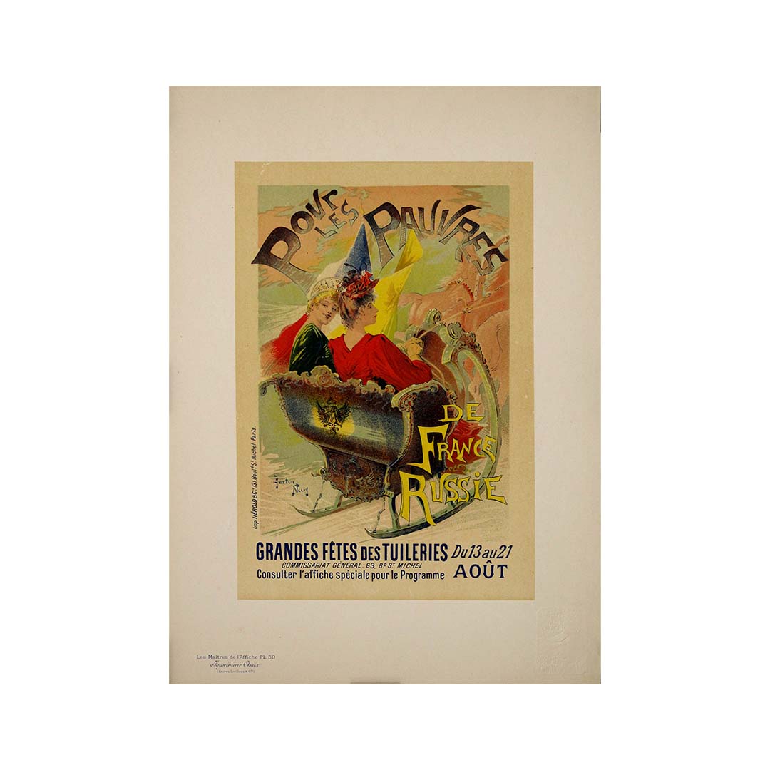 Pièce de collection exceptionnelle, « Pour les pauvres de France et de Russie » est imprimée sur son support d'origine de l'édition Les Maîtres de l'Affiche, avec le cachet sec en bas à droite, et est en très bon état. Une occasion rare d'acquérir une œuvre emblématique de l'un des illustrateurs majeurs de la Belle Époque.